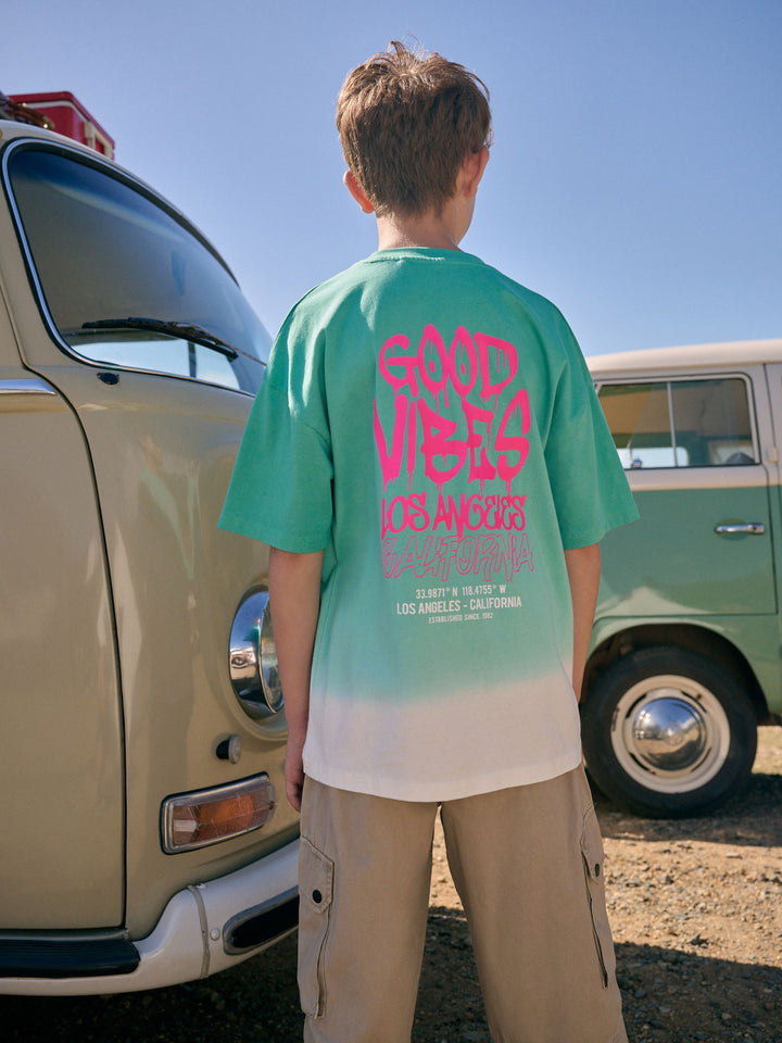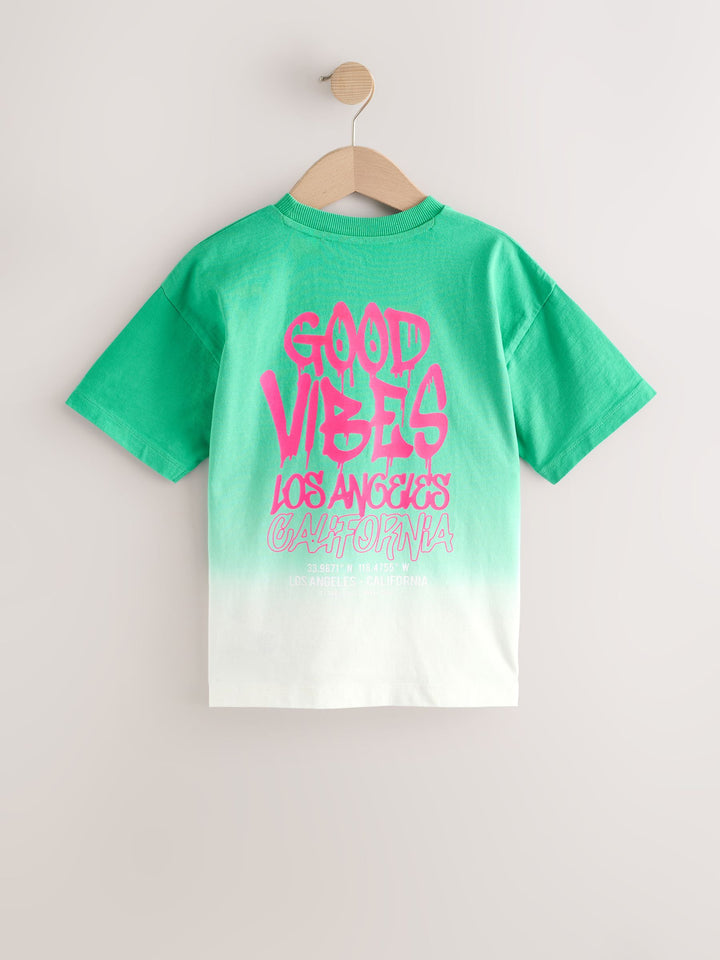 Green/White Back Print Relaxed Fit Tie Dye Graphic Print Short Sleeve T-Shirt (3-16yrs)