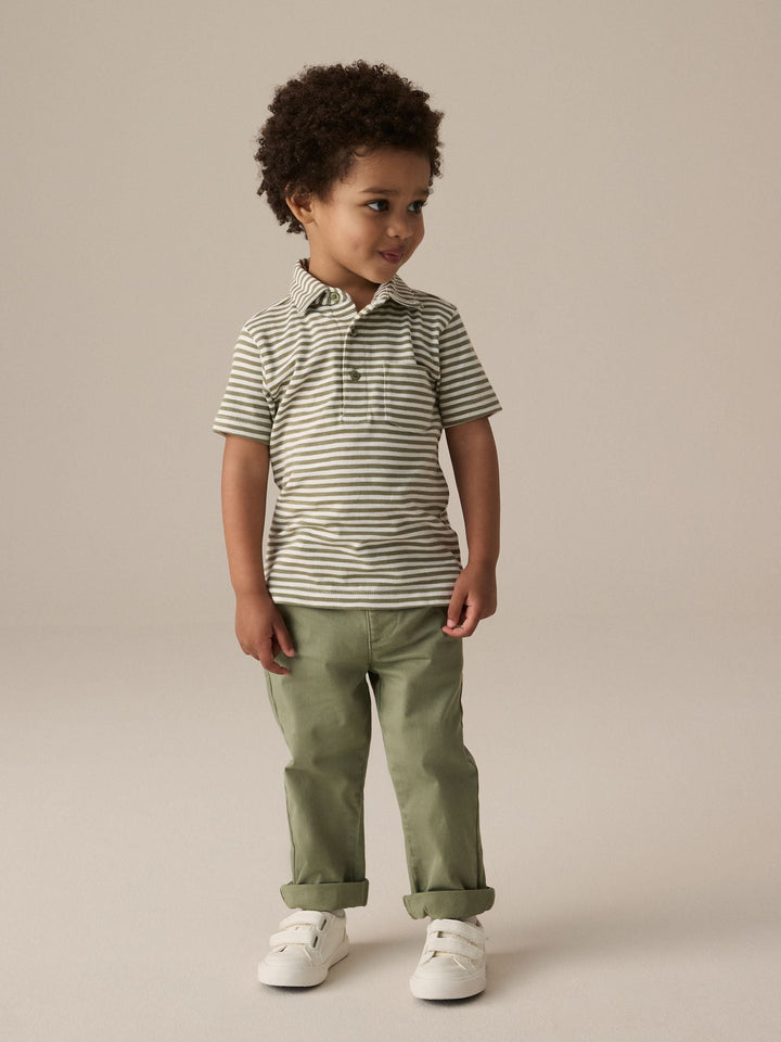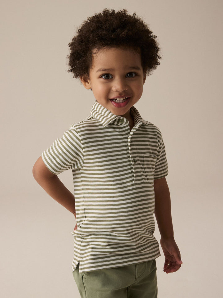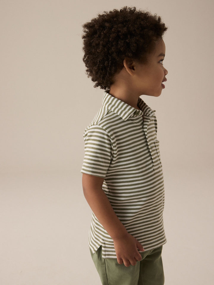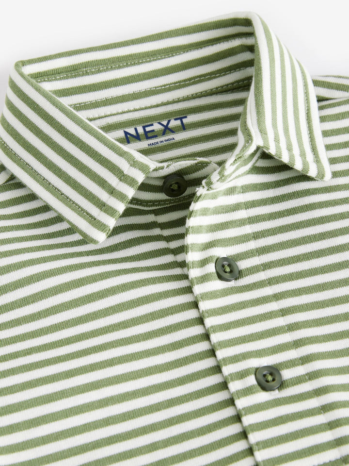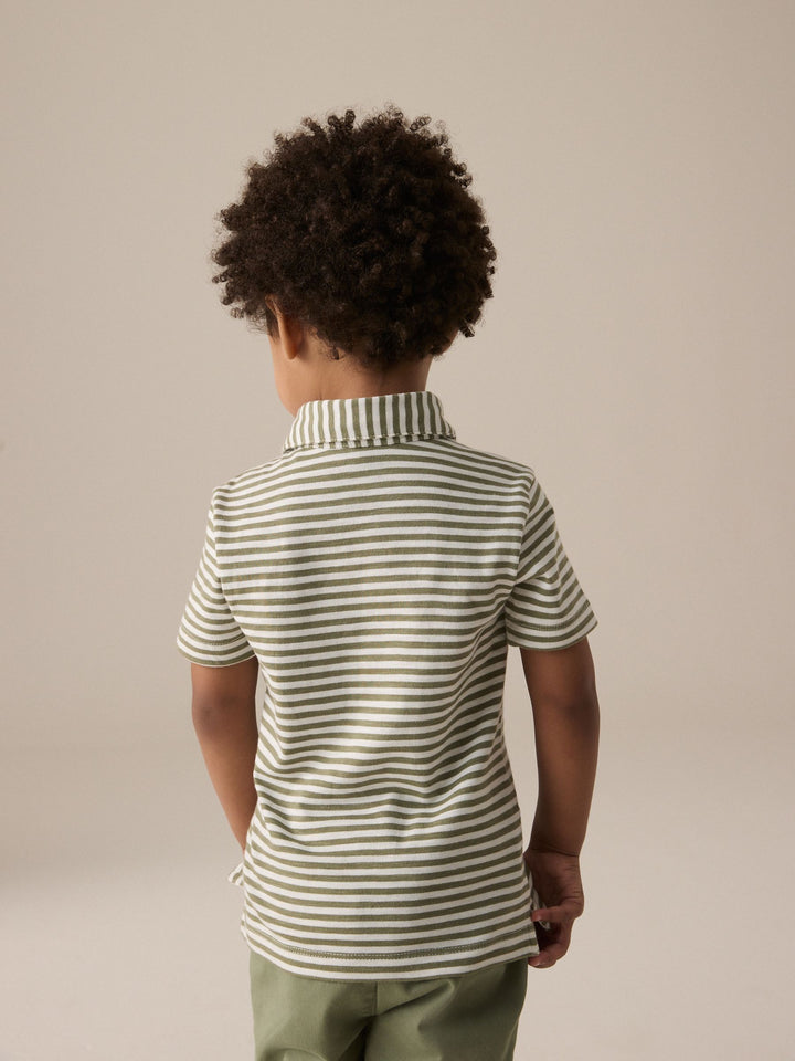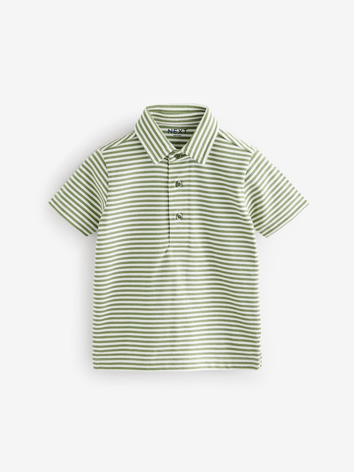 This smart and comfortable green polo shirt is made from pure cotton with a button-up neckline, a classic collar and a striped all-over print. Simply style with a pair of jeans and they're ready for a day of adventure. 100% cotton Button-up neckline Classic collar Striped print Machine washable. 100% Cotton. Country of Origin: India