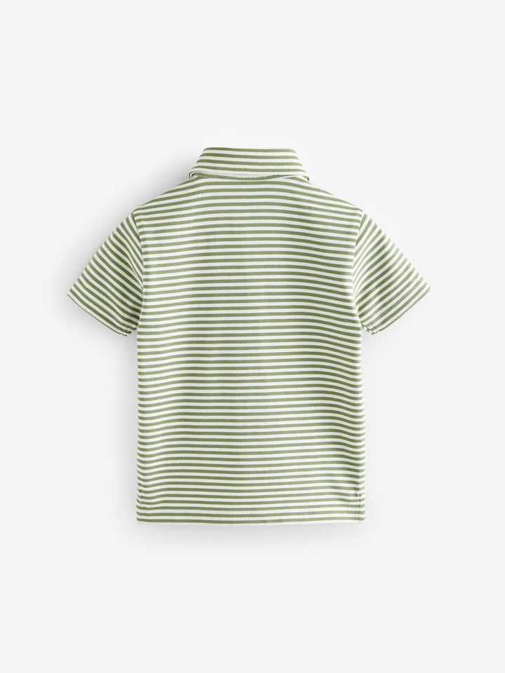Green/White Short Sleeve Stripe 100% Cotton Polo Shirt (3mths-7yrs)