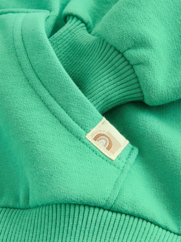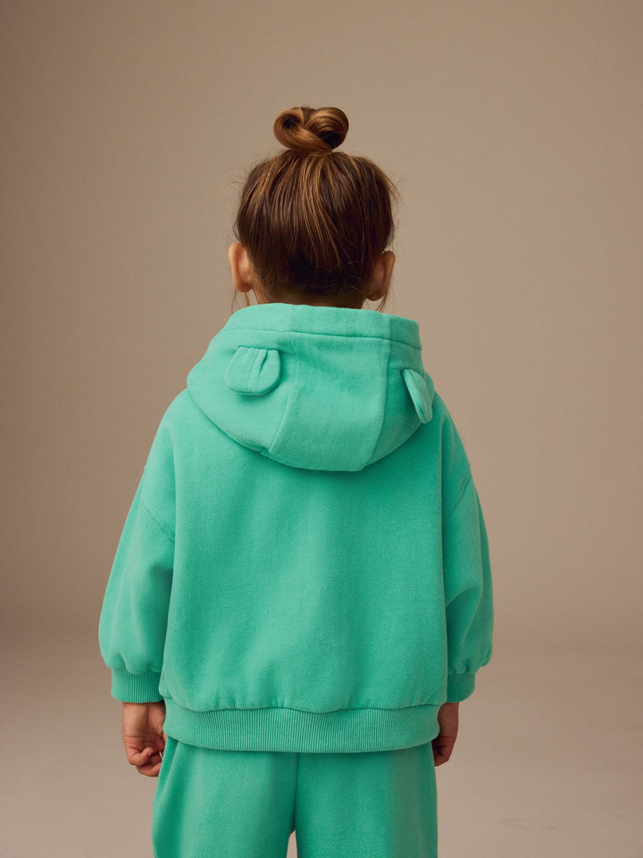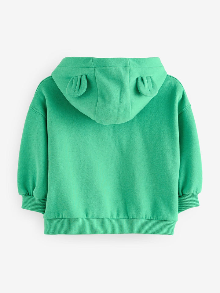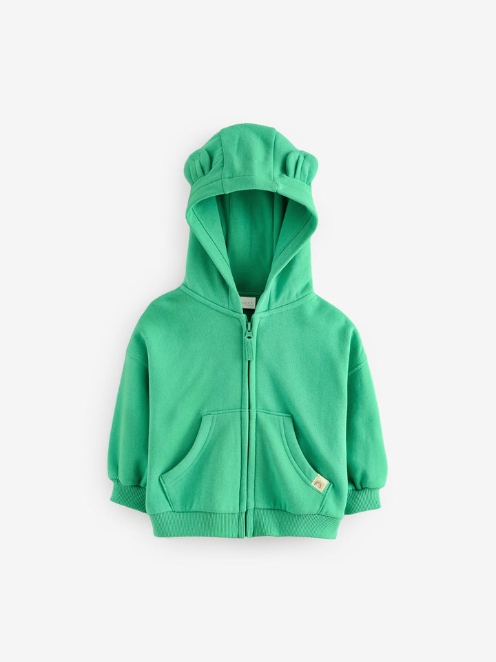 In a cotton-rich blend, this classic green zip through hooded jacket will keep her cosy when layered over her favourite casual t-shirts or dresses, featuring drop shoulders, a hood with 3D ears and ribbed trims. Cotton-rich jersey Zip fastening Set-in hood Drop shoulders Hand pockets Machine washable. 93% Cotton, 7% Recycled polyester. Country of Origin: Pakistan