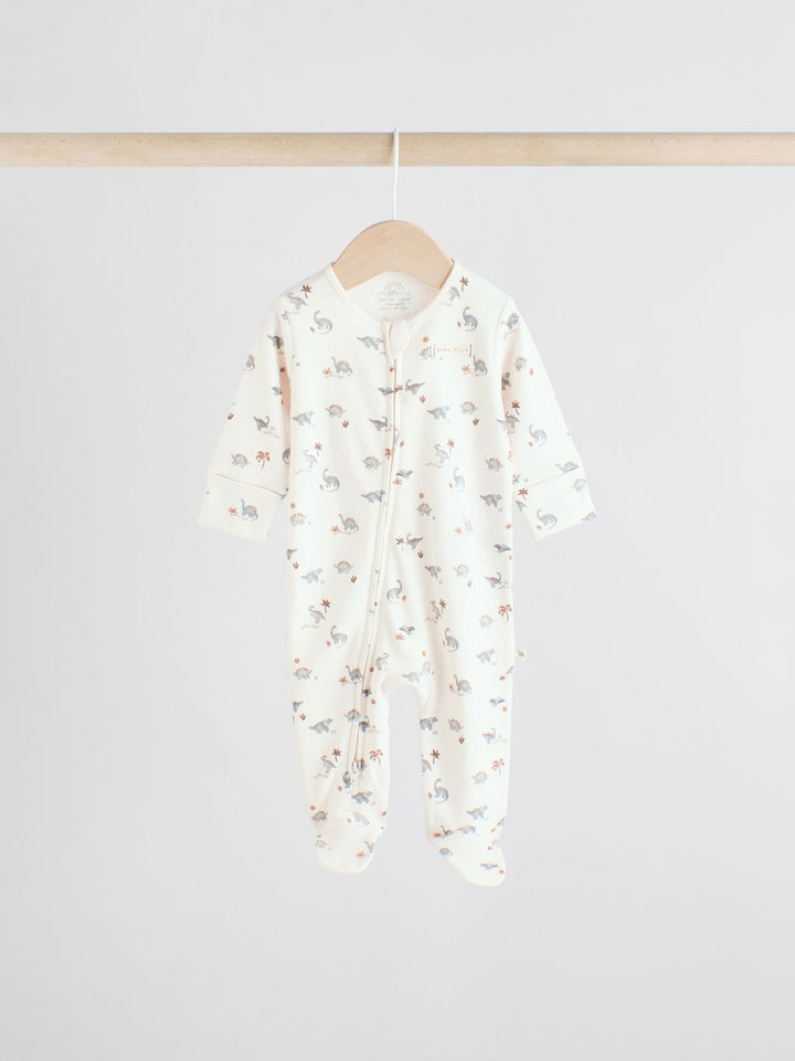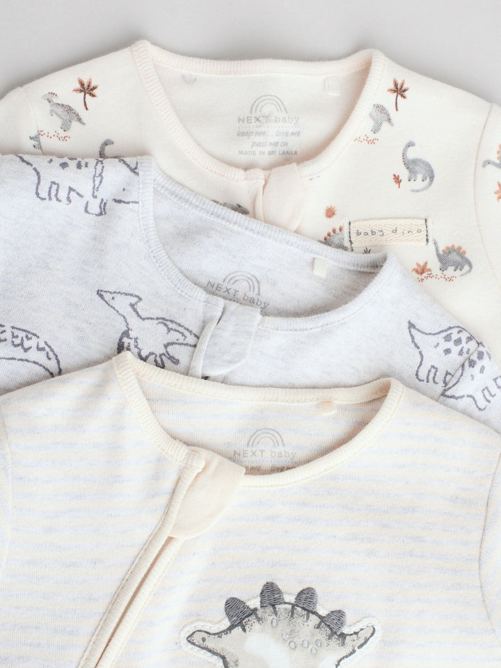 Grey 100% Cotton Two Way Zip Baby Sleepsuits 3 Pack (0-2yrs)