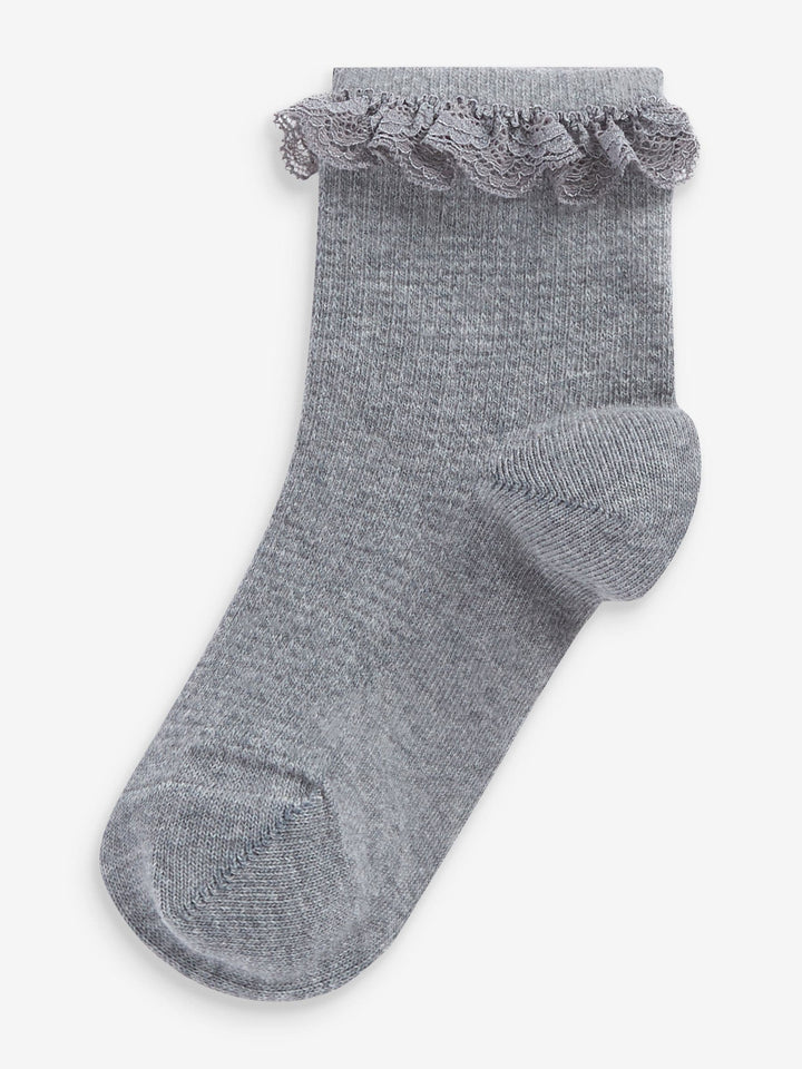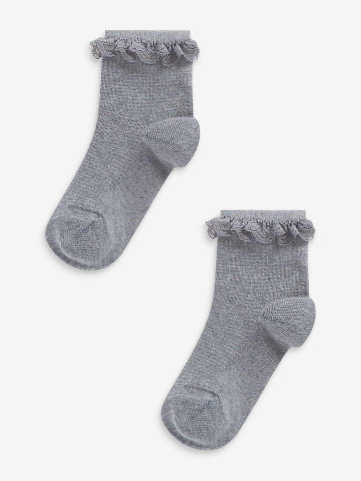 Ruffle detailing Multipack of 2 Cotton rich fabric Biome treatment From size 6 to 8.5 upwards Grey colour shades This product contains the biocide linseed oil Machine washable. 2 x Socks 73% Cotton, 25% Nylon, 2% Lycra® Elastane. Country of Origin: Turkey Made with LYCRA fibre so you have the freedom to move naturally and your clothes stay true to their shape. Lycra® is a trademark of The Lycra Company.