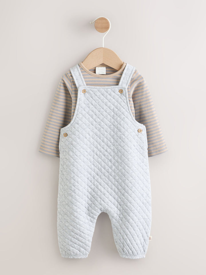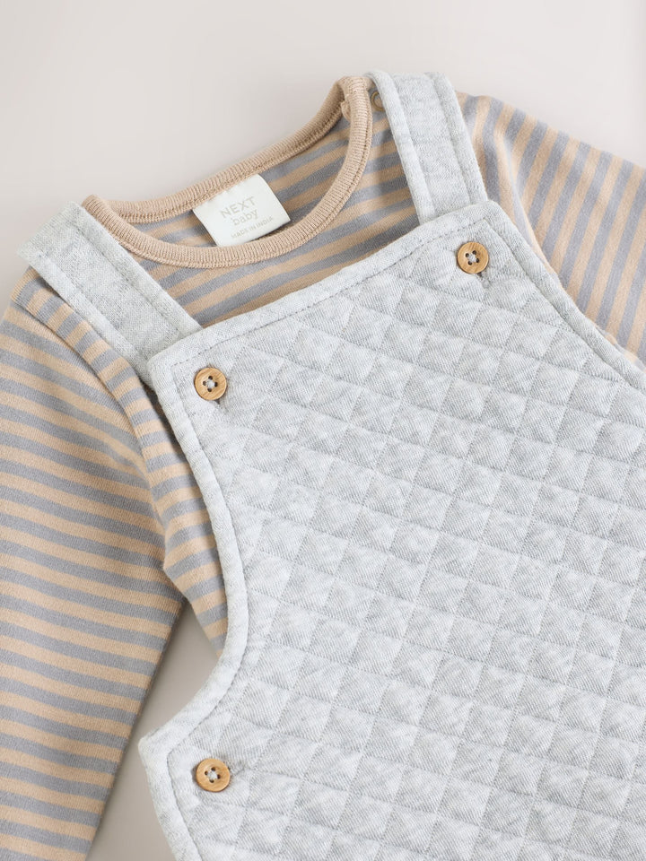 Grey Baby Jersey Quilted Dungarees and Bodysuit Set (0mths-2yrs)