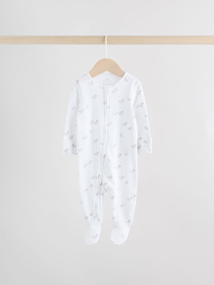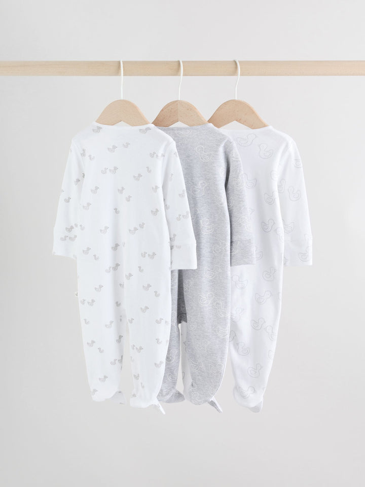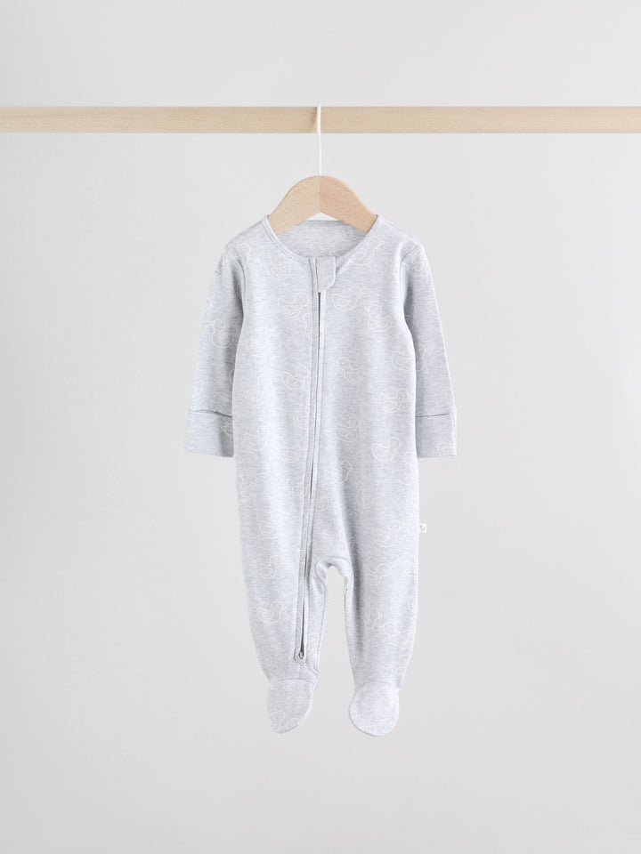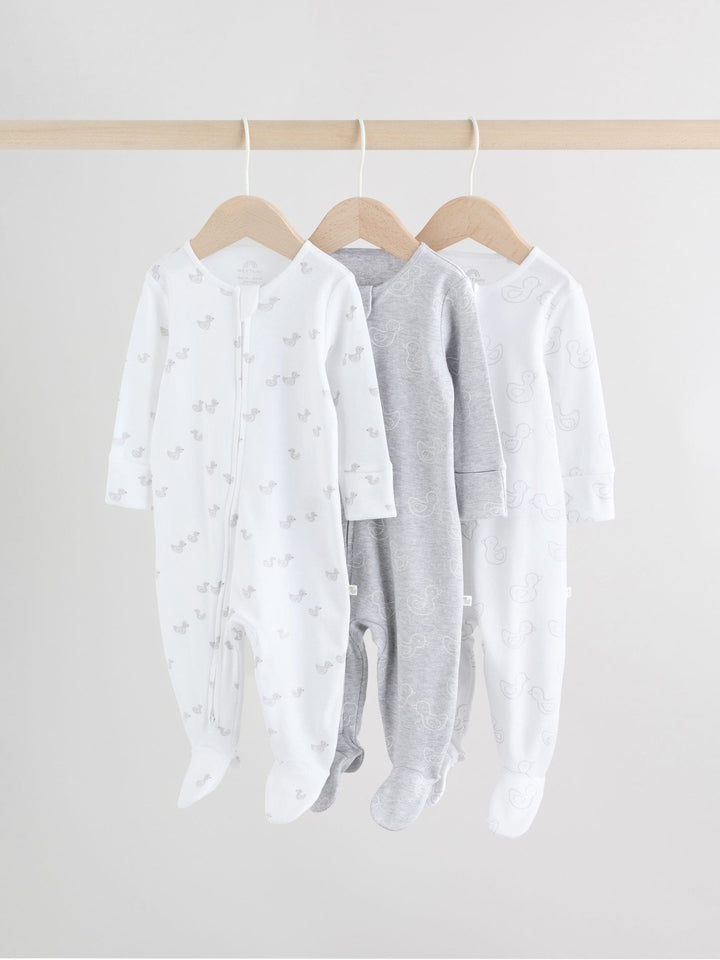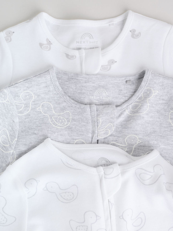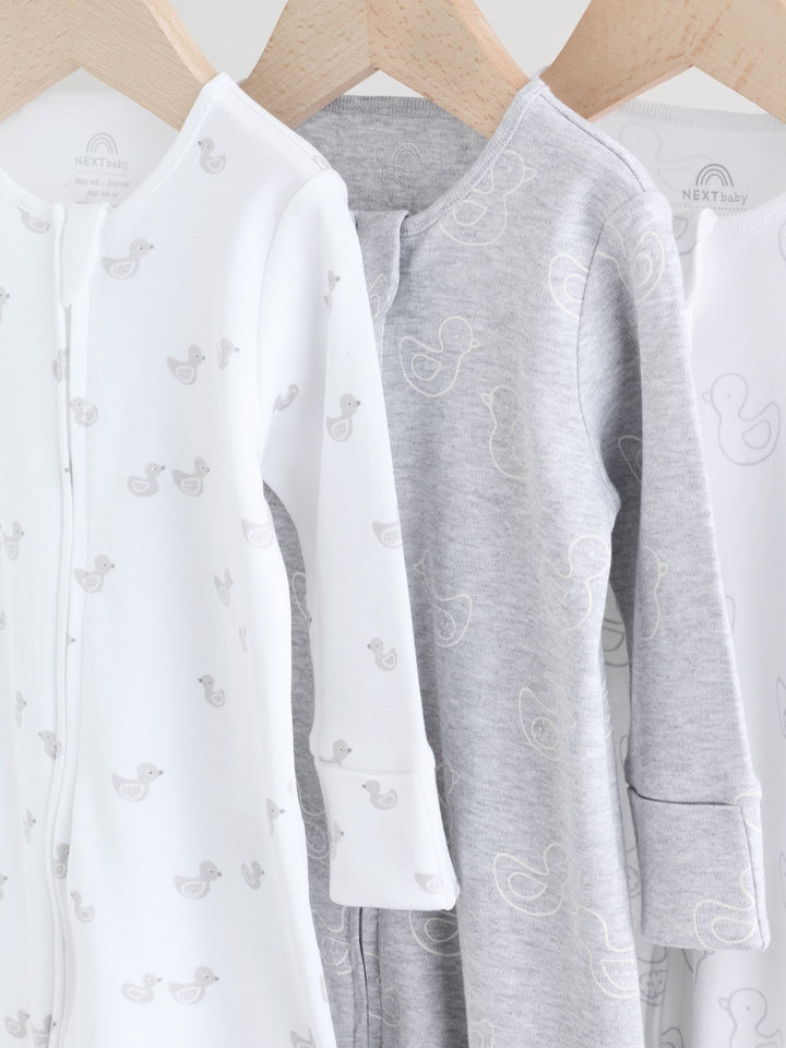 Grey Baby Two Way Zip Sleepsuits 3 Pack (0-2yrs)