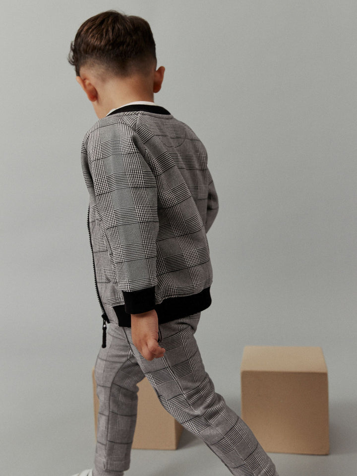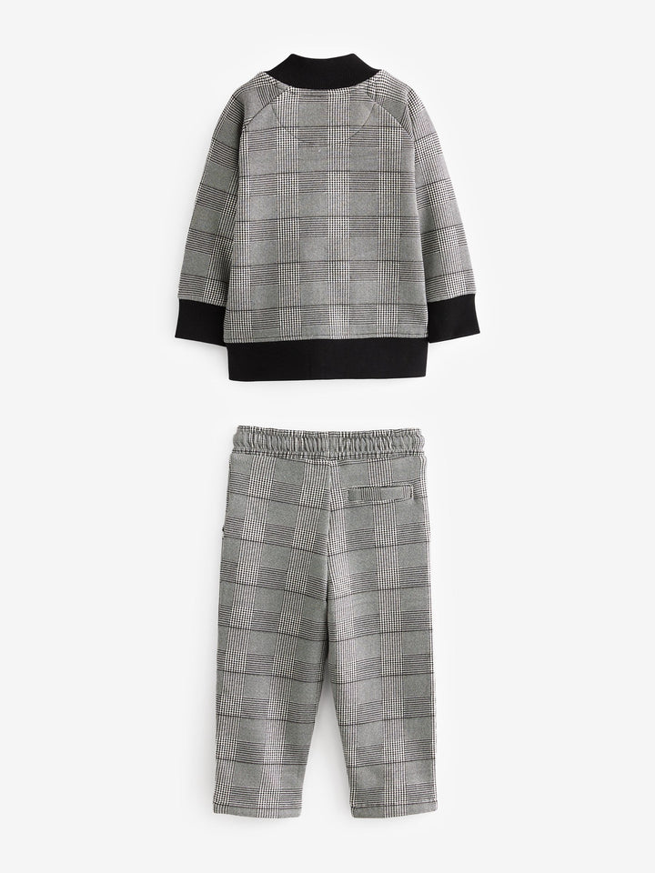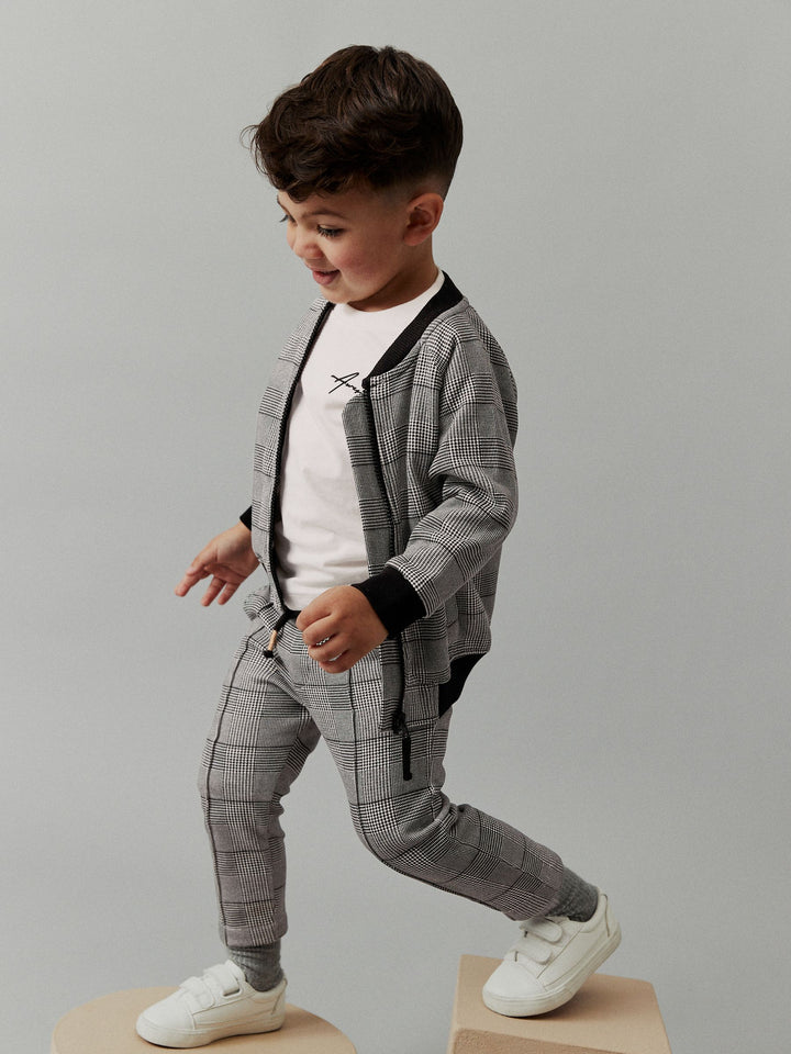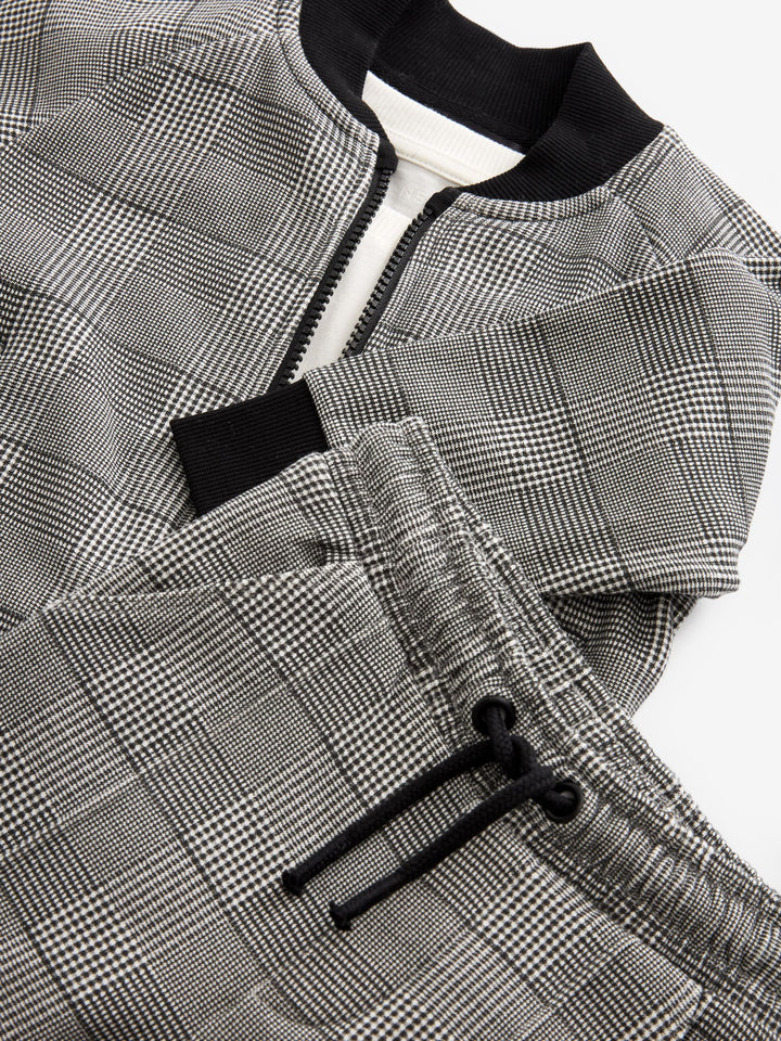 Grey Black 100% Cotton Jersey Check Bomber and Joggers Set 3 Piece (3mths-7yrs)