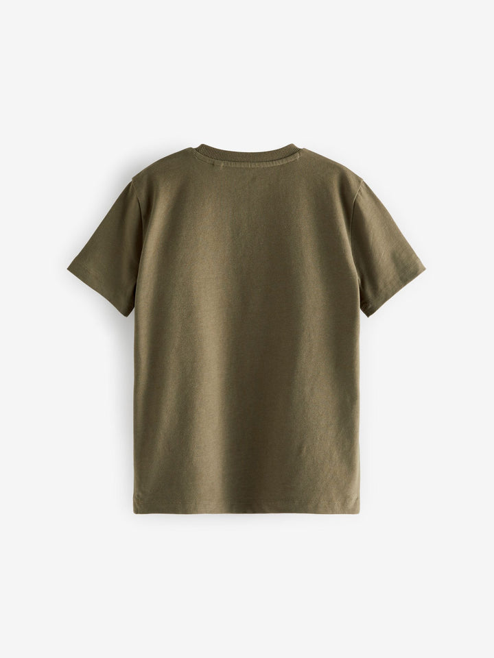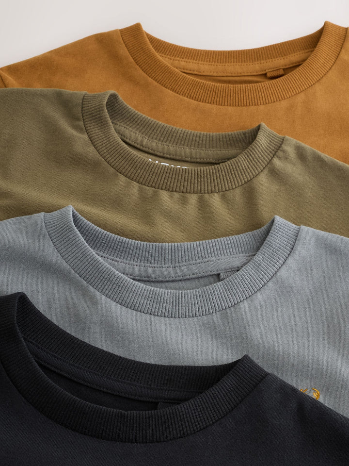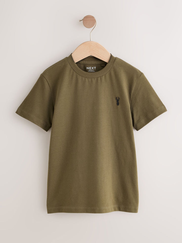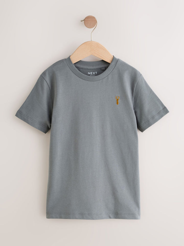 Grey/Black/Khaki Green/Tan Brown Short Sleeve Stag Embroidered T-Shirts 4 Pack (3-16yrs)