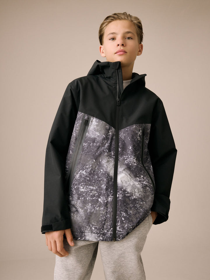 Grey/Black Waterproof Fleece Lined Hooded Jacket (3-17yrs)
