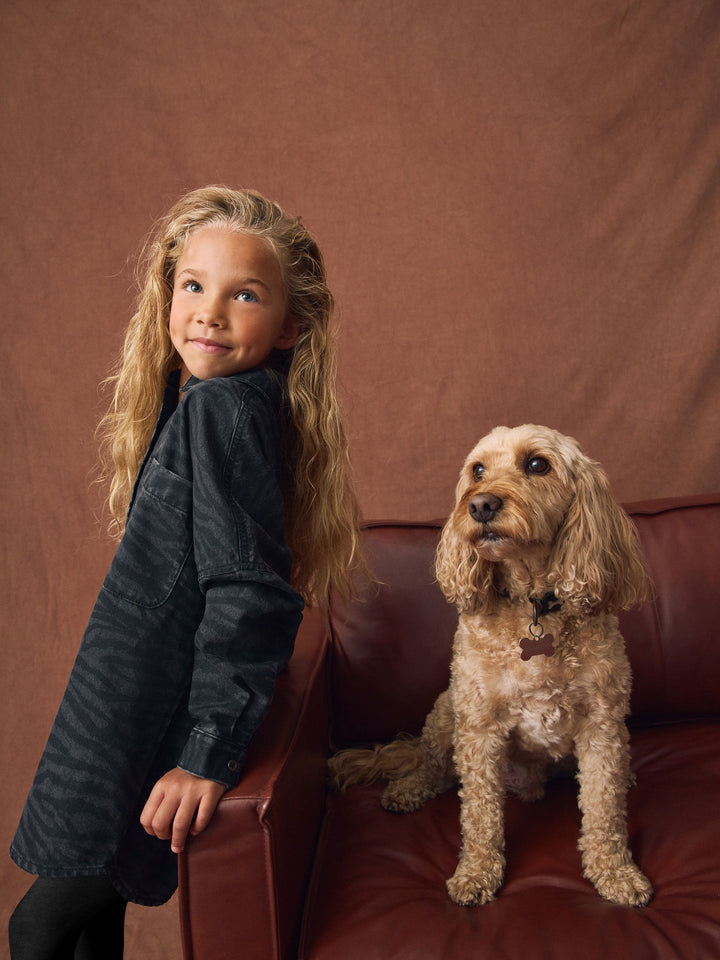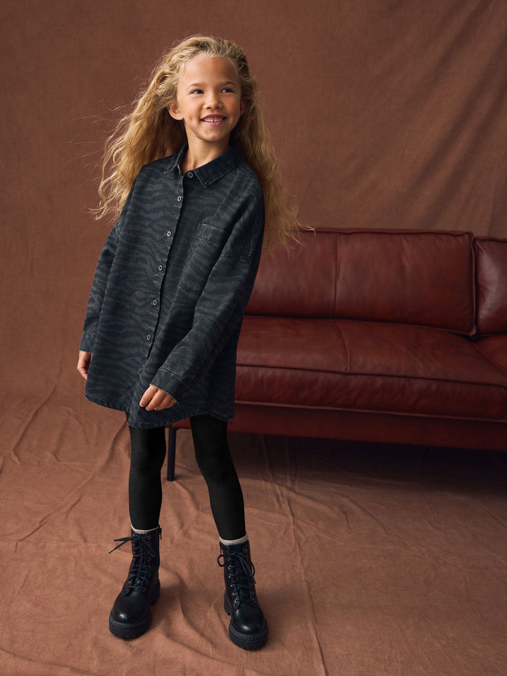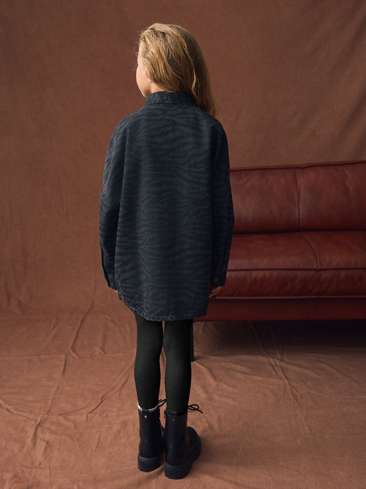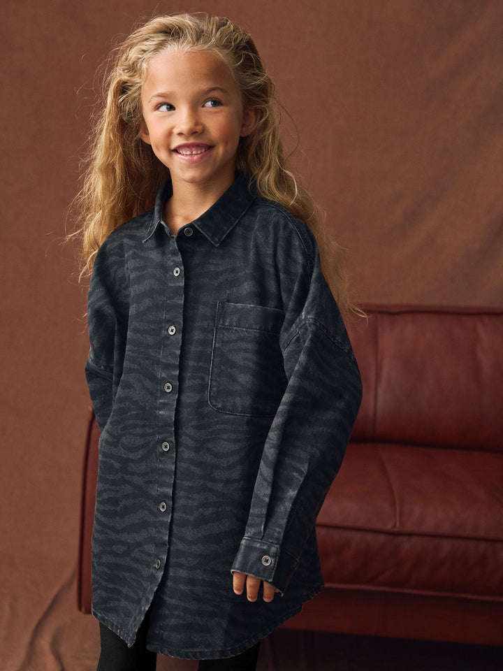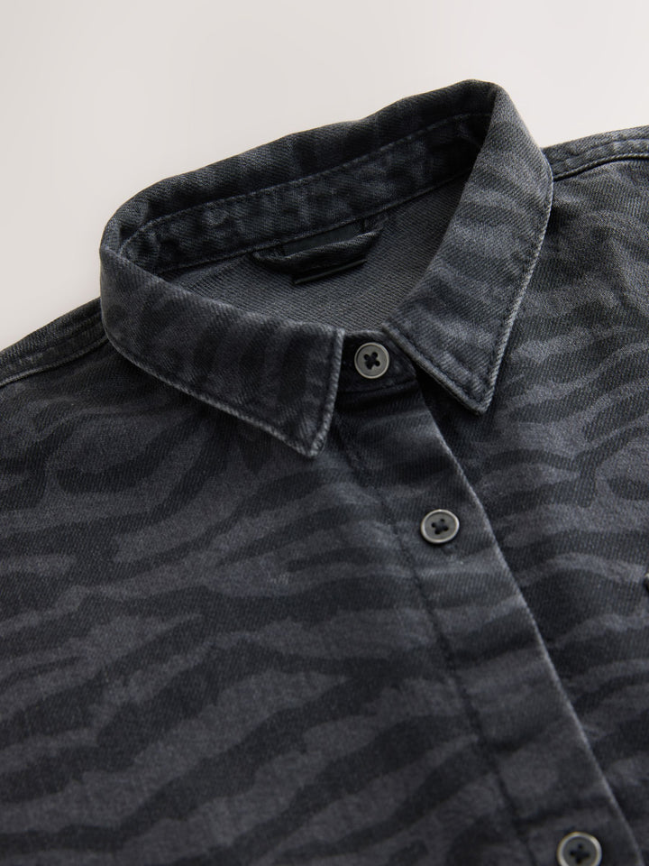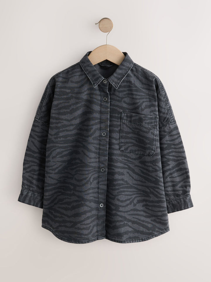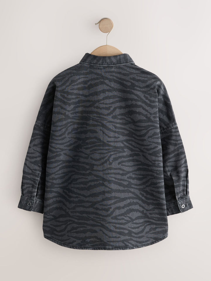 Grey/Black Zebra Animal Denim Shirt (3-16yrs)