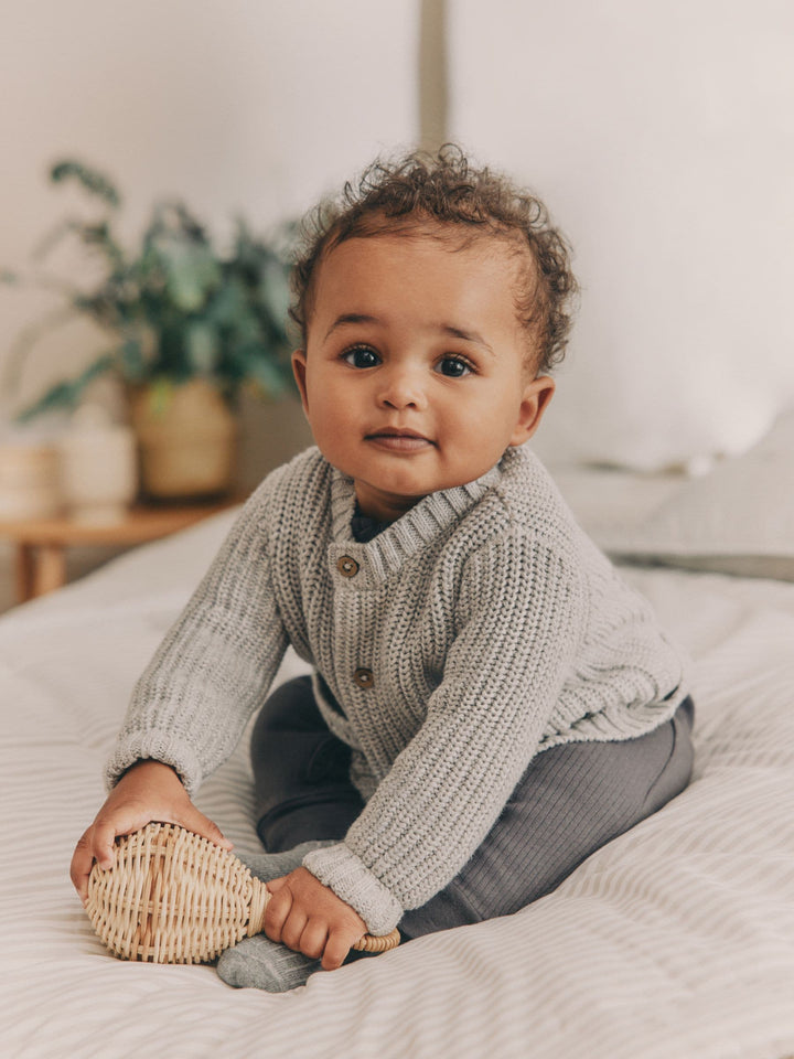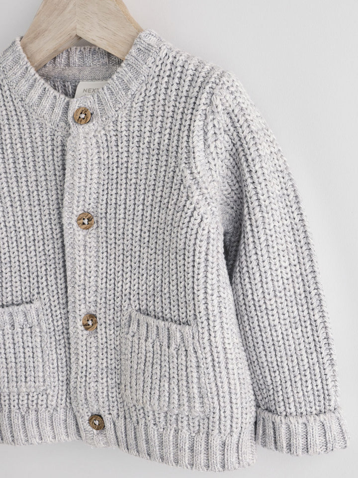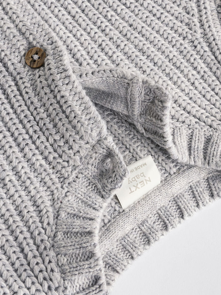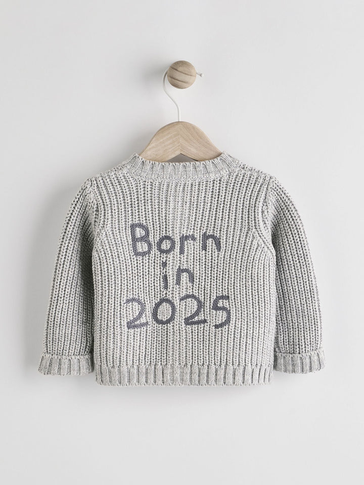 Grey Born In 2025 Baby Knitted 100% Cotton Cardigan