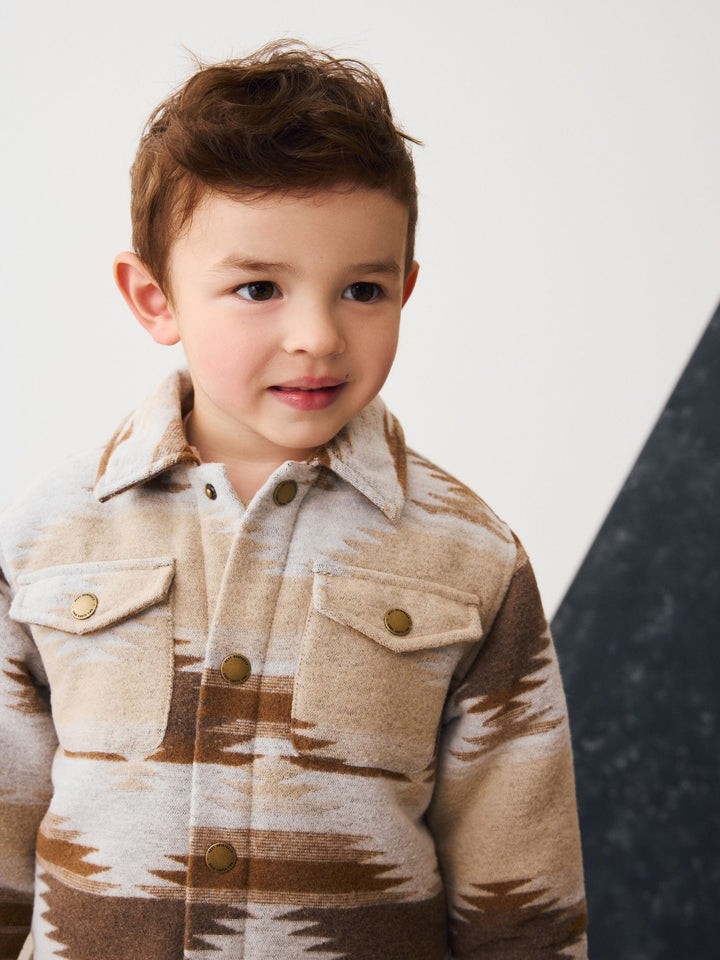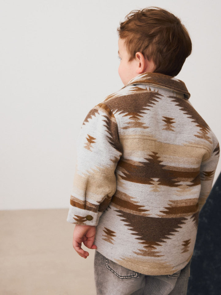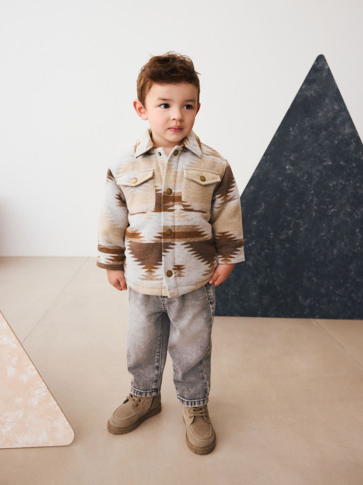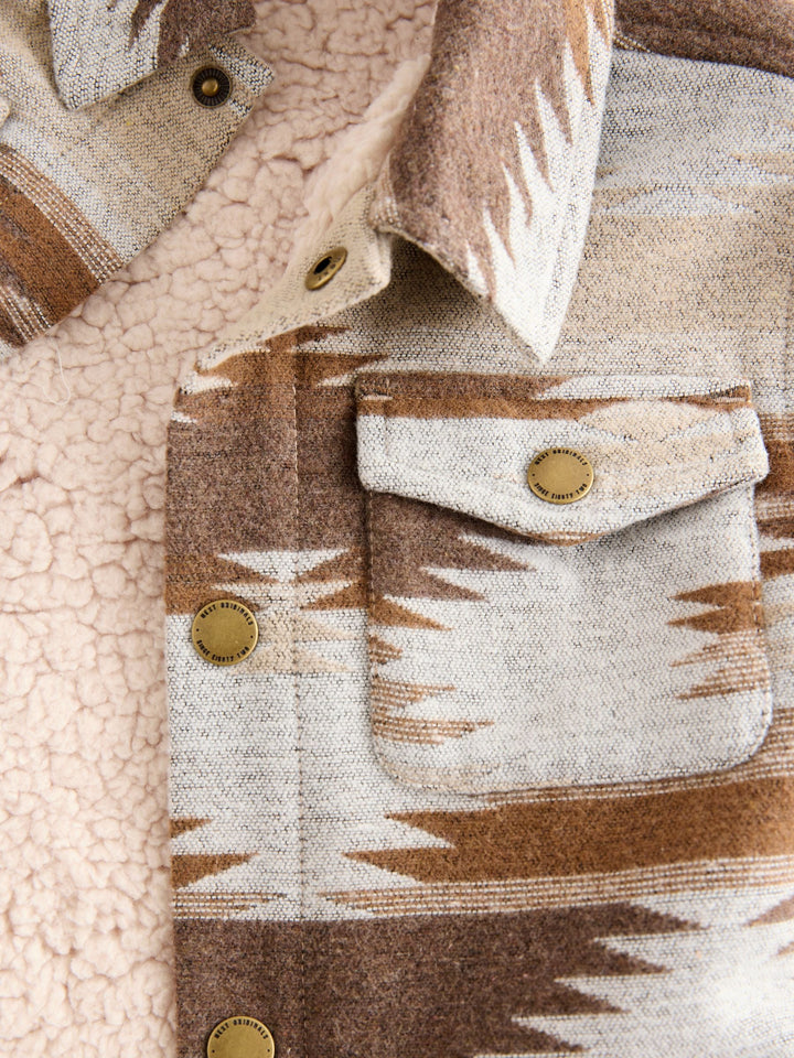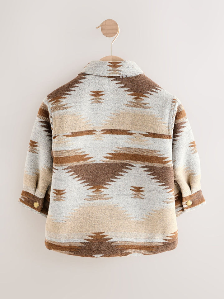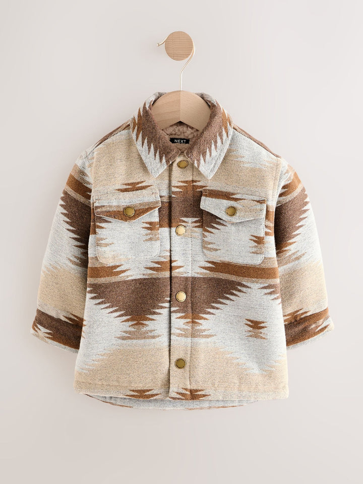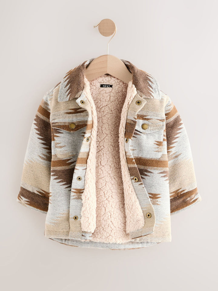 Grey/Brown Borg Lined Pattern Shacket (3mths-7yrs)