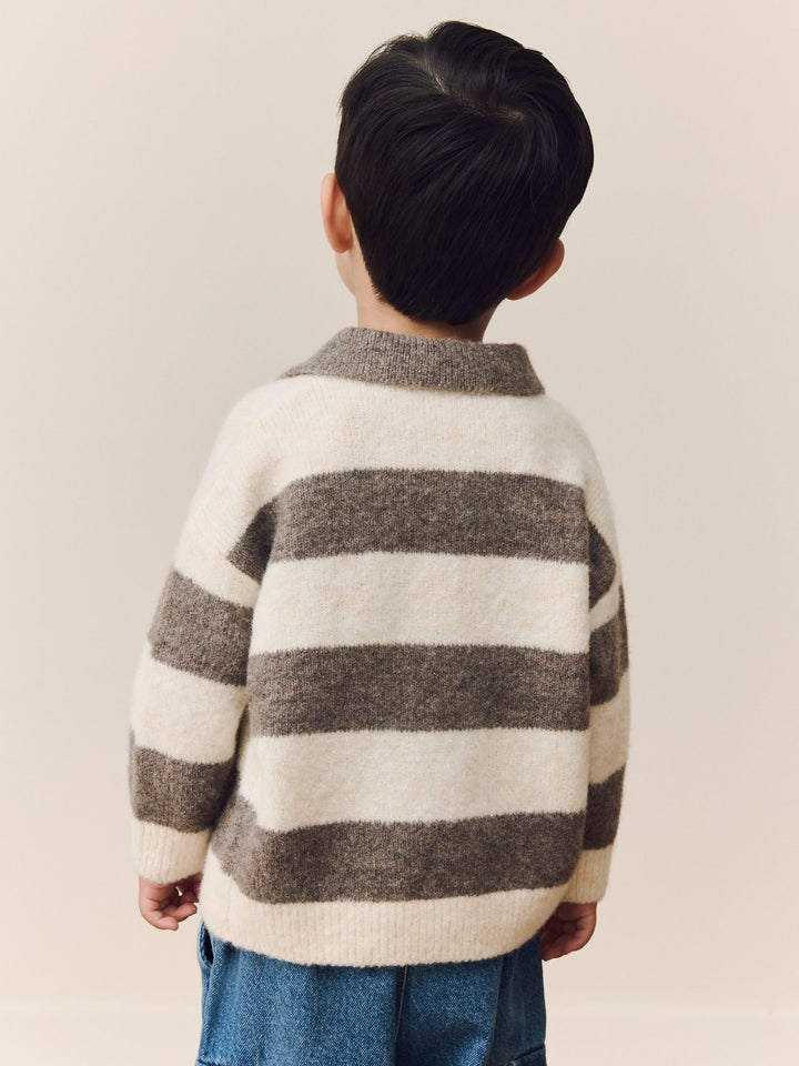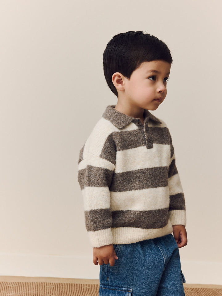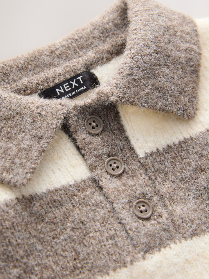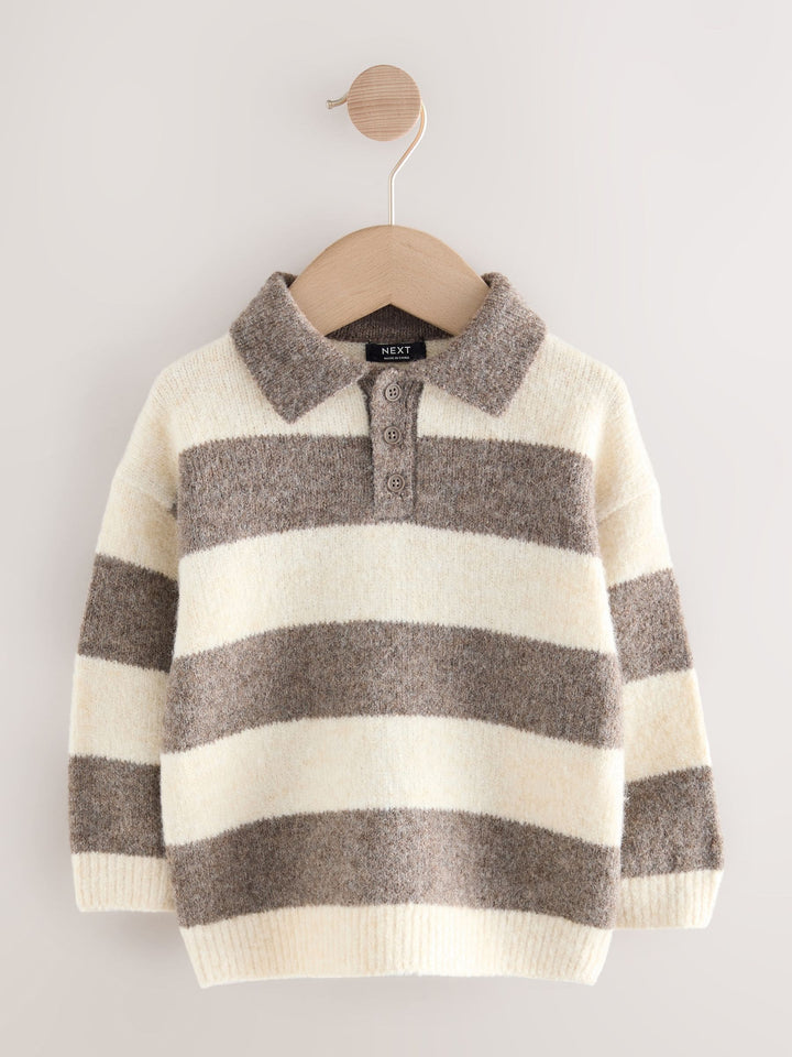 Grey/Brown Stripe Knitted Rugby Polo Shirt (3mths-7yrs)