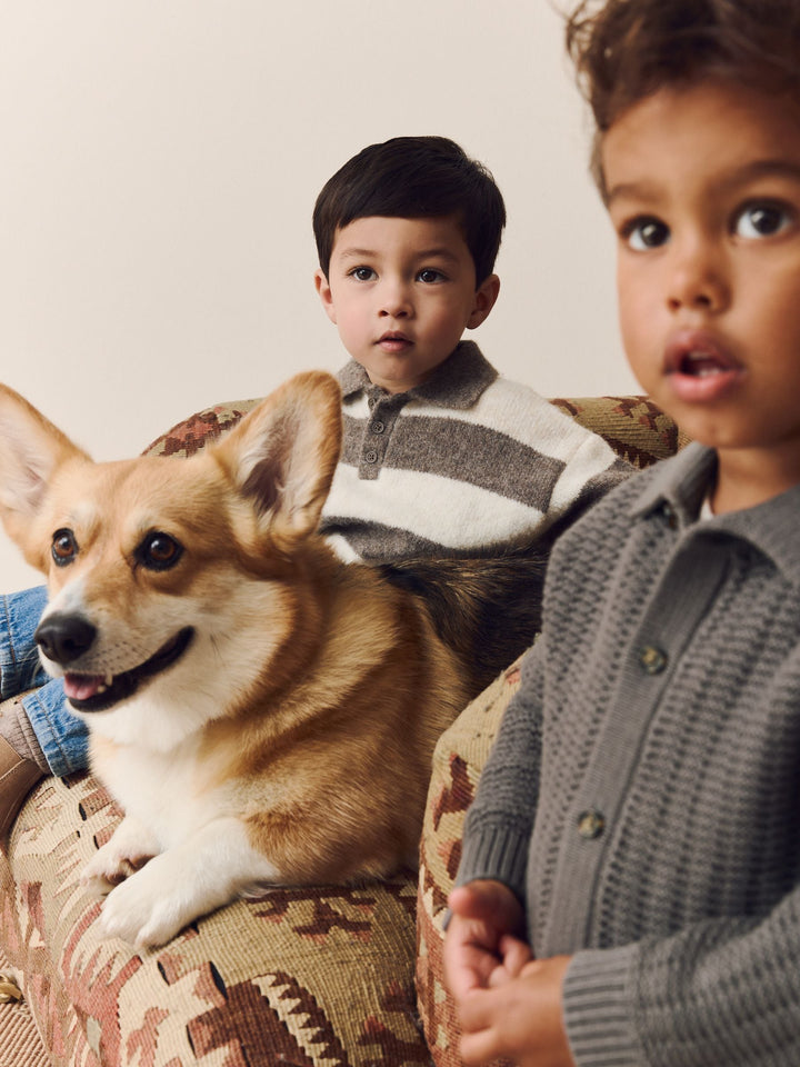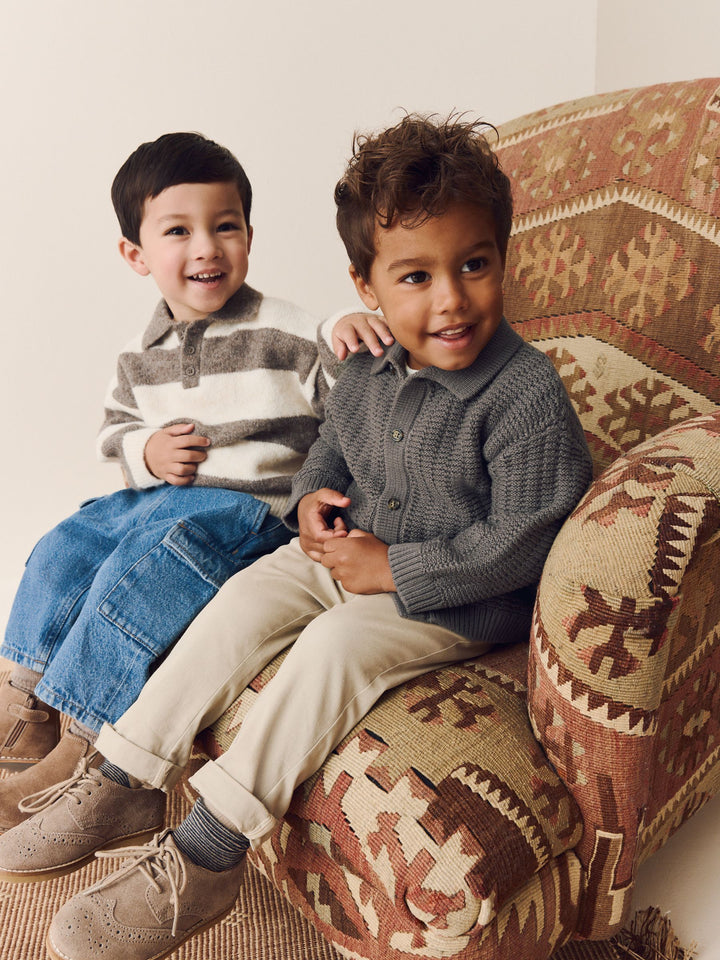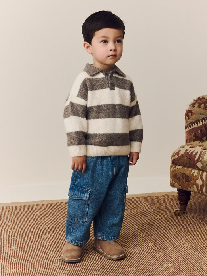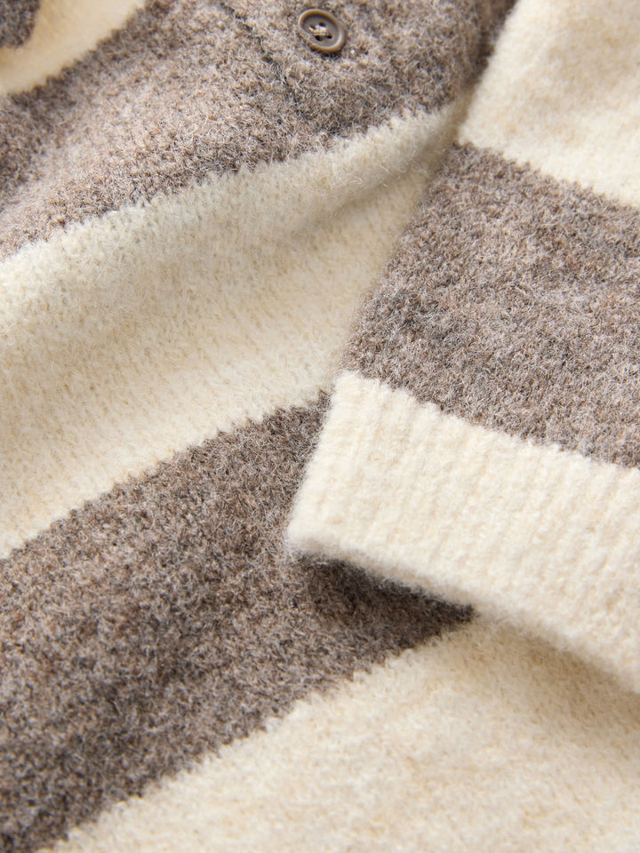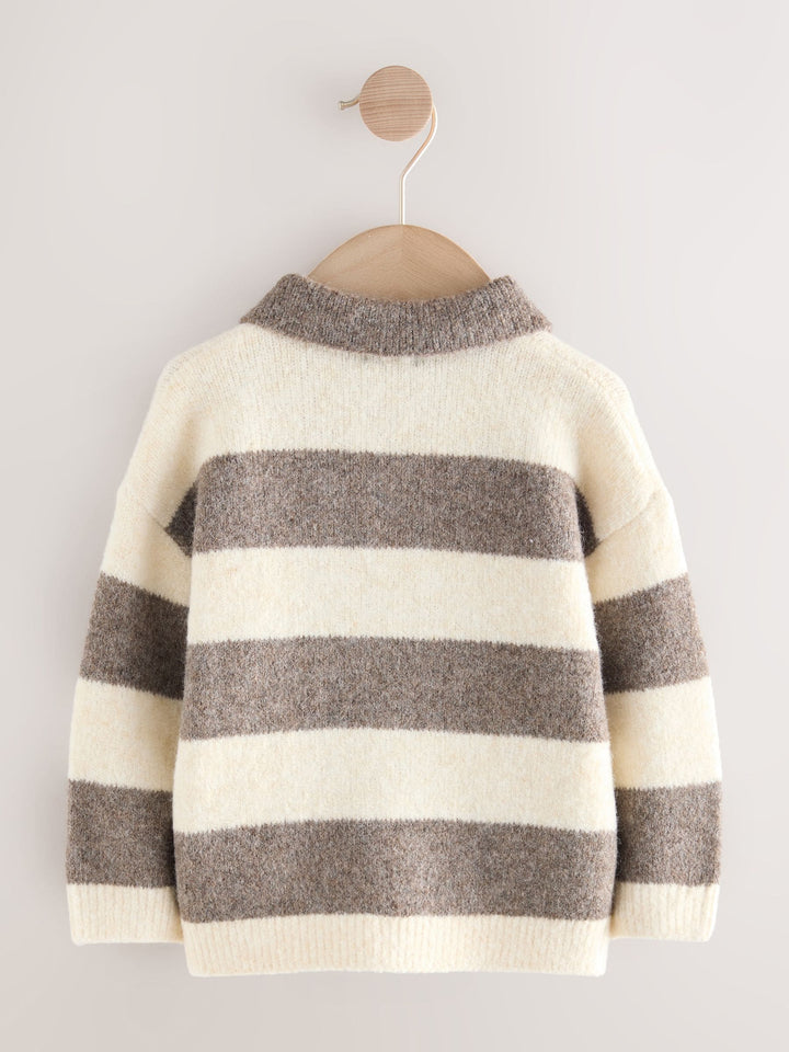 Grey/Brown Stripe Knitted Rugby Polo Shirt (3mths-7yrs)