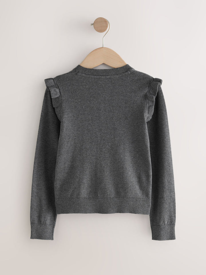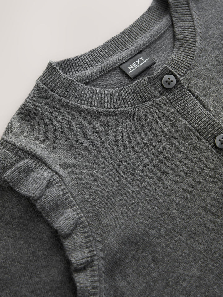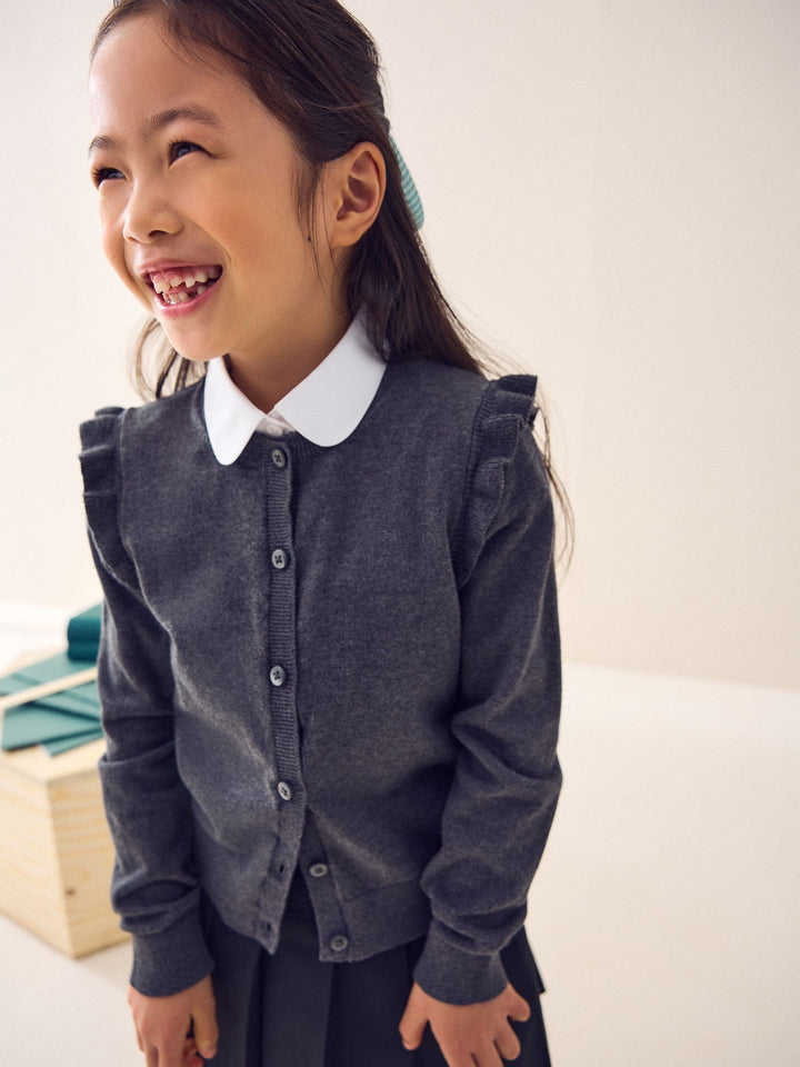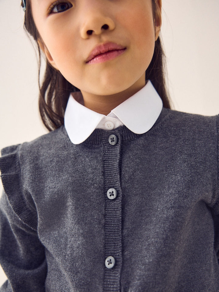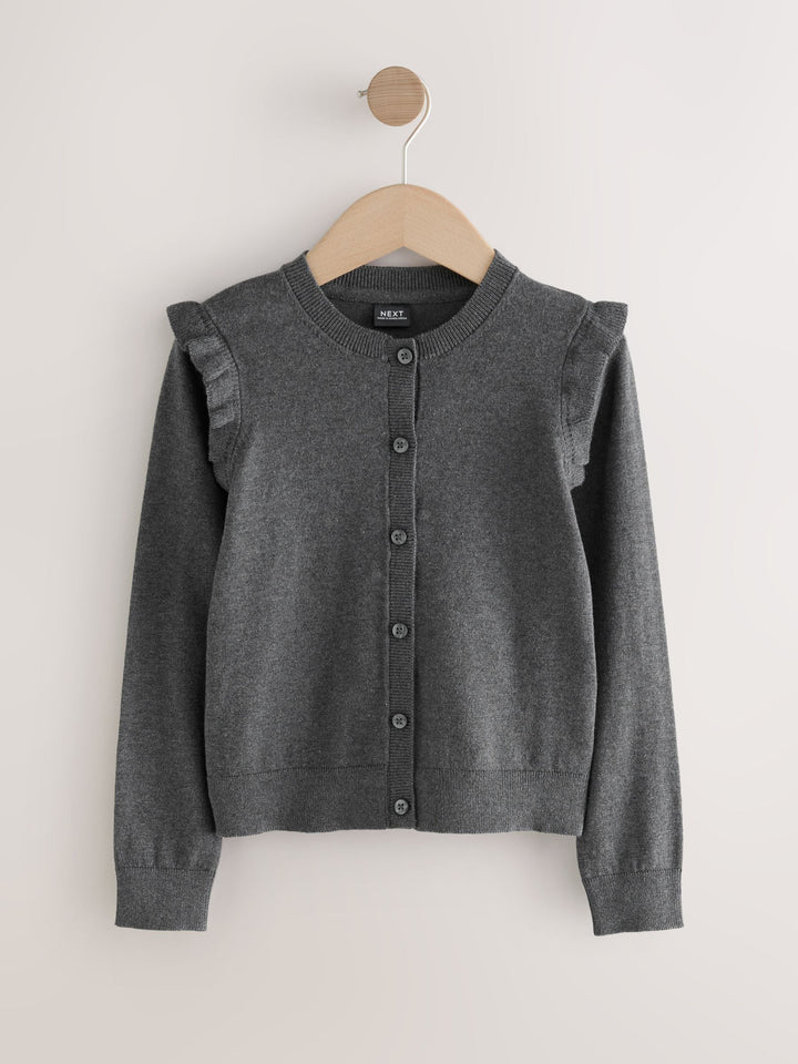 Grey Cotton Rich Frill Shoulder School Cardigan (3-16yrs)