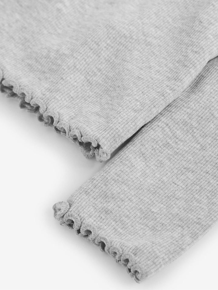 Stock-up on style staples for your little ones, with this grey stretchy rib long sleeve T-Shirt, finished with fluted edges and a crewneck collar. Regular fit Rib fabric Crewneck collar Fluted edges 90% Cotton, 5% Elastane, 5% Viscose. Country of Origin: Bangladesh