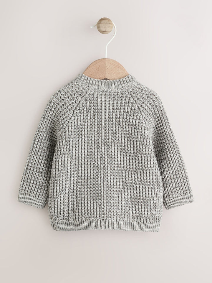 Grey Crochet Flowers Baby Knitted Cardigan (0mths-3yrs)