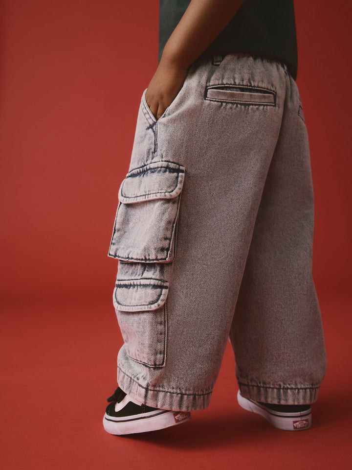 Grey Denim 100% Cotton Cargo Trouser Jeans (3mths-7yrs)