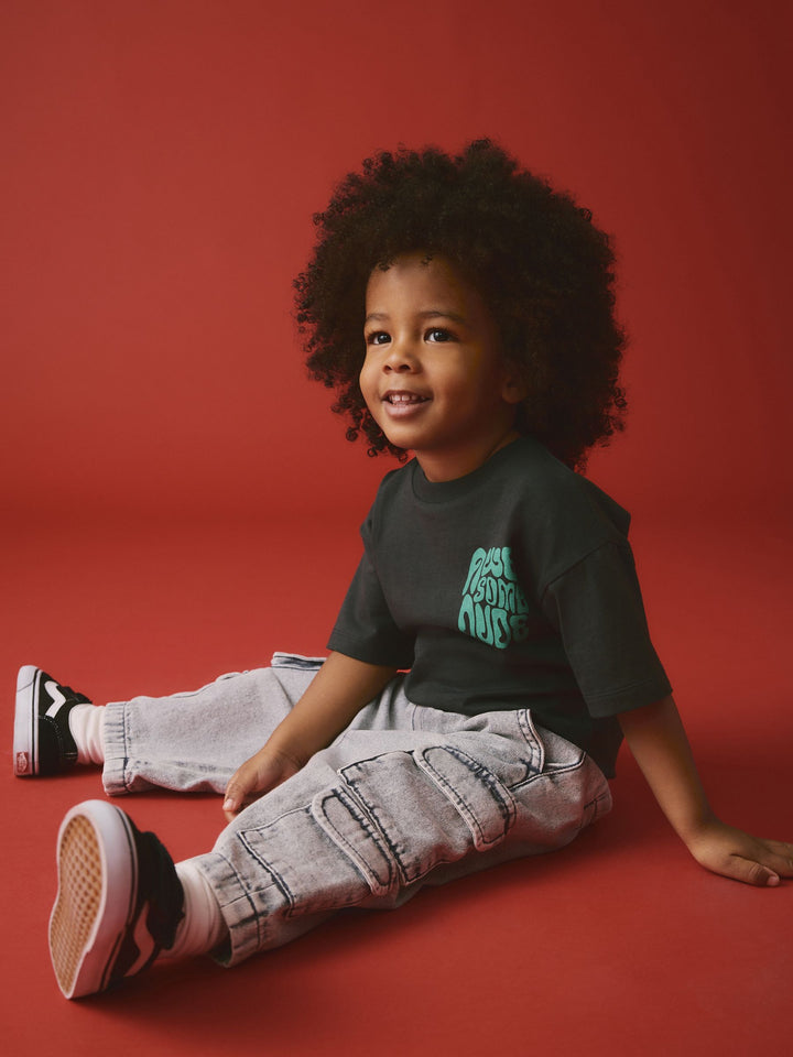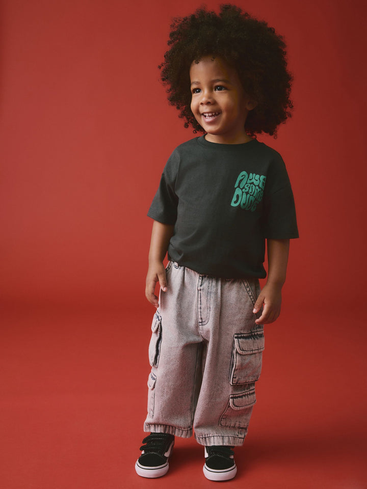 Let him channel the cargo trend with these cotton trousers. Made from pure cotton, they're cut in a looser fit with utility style pockets and zip fly and popper fastening with a stretch waistband. Pair with a t-shirt and trainers for a fun look. 100% cotton Cargo style Pockets Loose fit Stretch waistband 100% Cotton. Country of Origin: Bangladesh