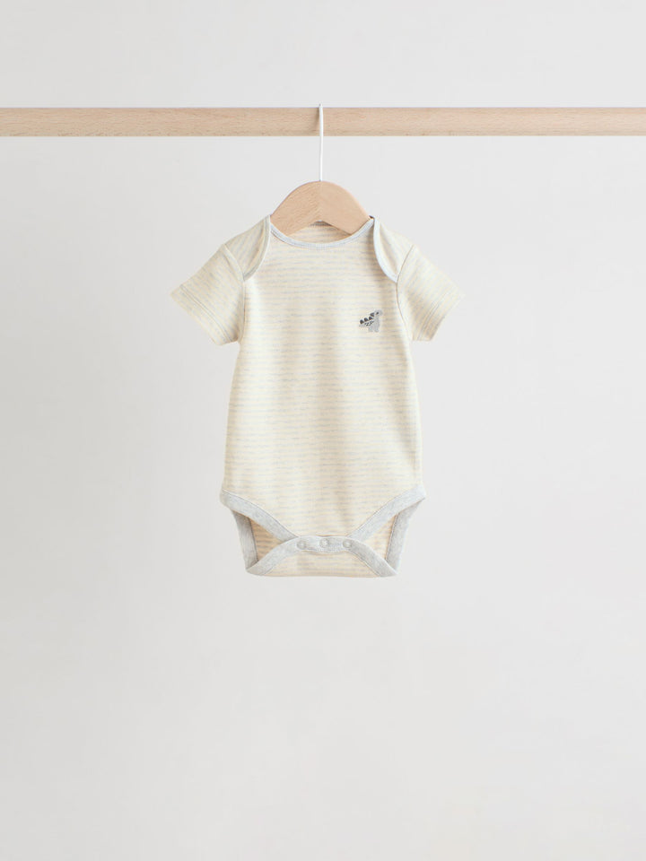 Grey Dinosaur Short Sleeve Baby Bodysuits 5 Pack