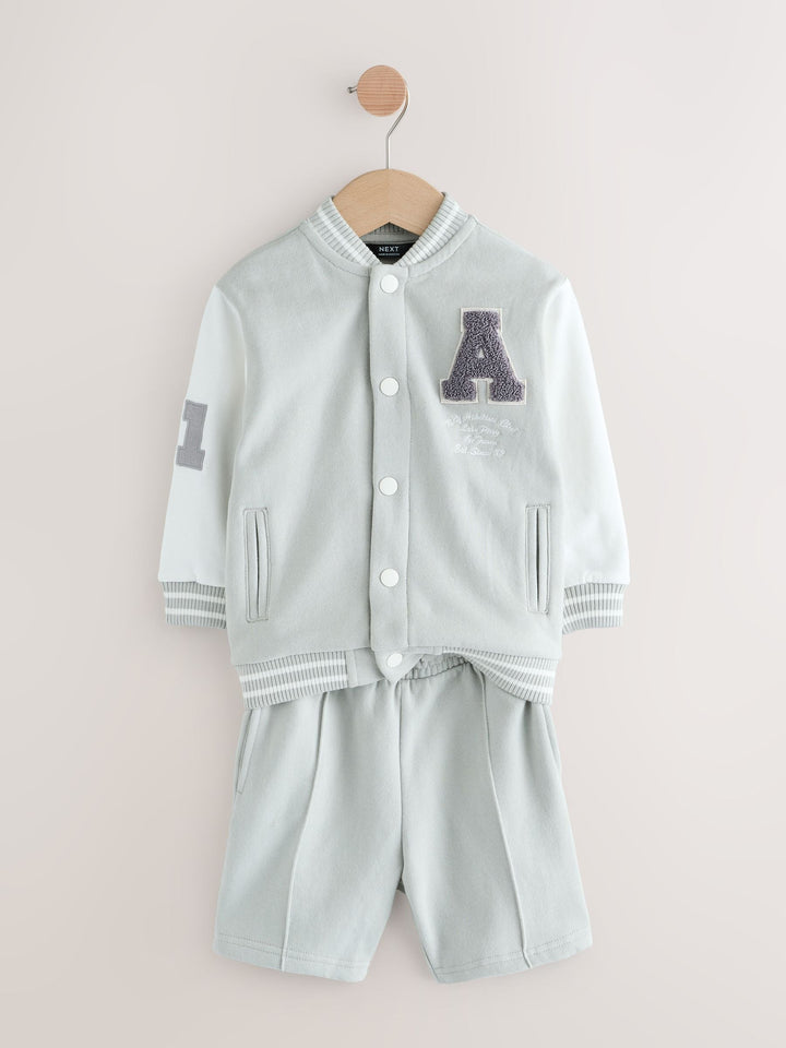 Grey Jersey Letterman And Pintuck Shorts Set (3mths-7yrs)