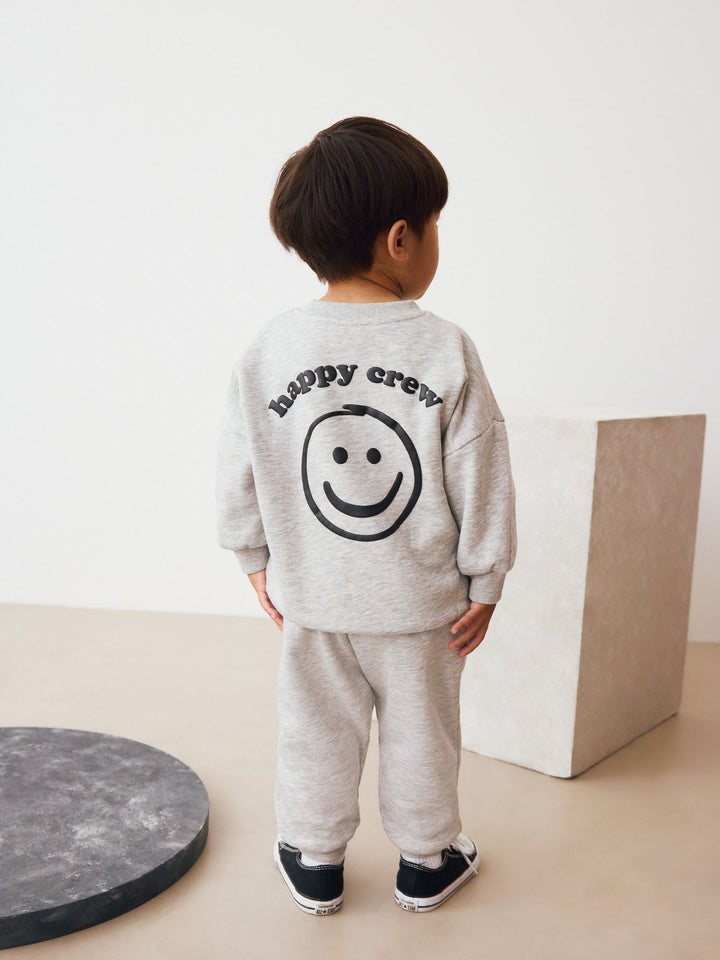 Grey Marl Single Printed Crew and Joggers Set (3mths-7yrs)