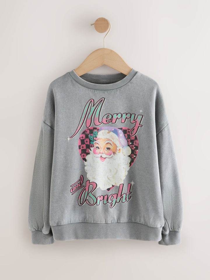 Grey Merry and Bright Washed Christmas Jumper and Sweatshirt Set (3-16yrs)