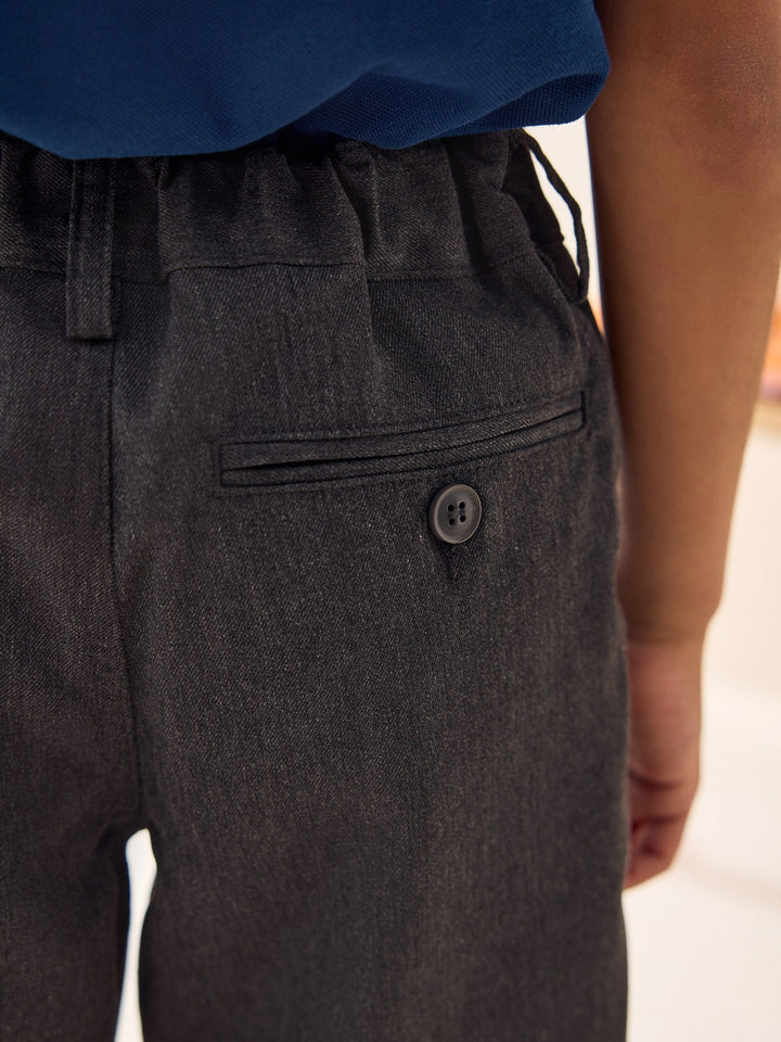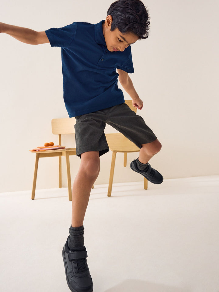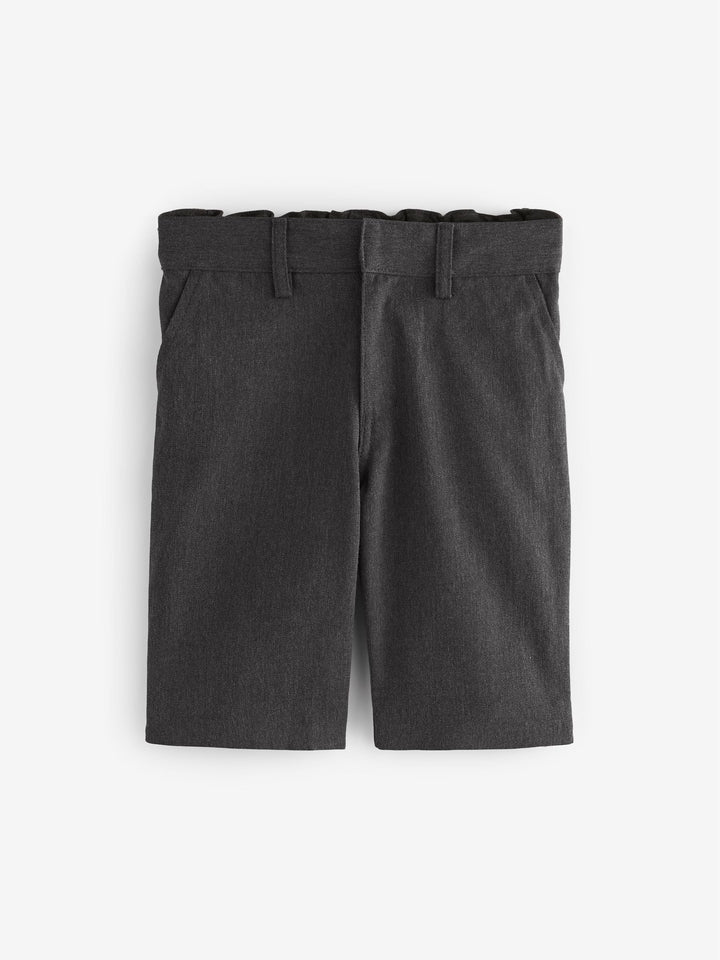 Keep him smart and stylish with these easy-to-wear grey school shorts. The zip fly front comes with hook and bar fastening and the elasticated waist ensures the perfect fit. Complete with an easy iron finish, these really are the perfect pair for his summer uniform.Key features Easy Iron Fabric - Handy easy-iron finish Teflon® Technology - a treatment that repels water and water-based stains for easy cleaning and quick drying Machine washable Elasticated back waistband Flat front Pull-on waist option available Machine washable. 65% Recycled polyester, 35% LENZING™ ECOVERO™ Viscose. Country of Origin: Bangladesh This product is made with teflon. Teflon® is a registered trademark of DuPont.