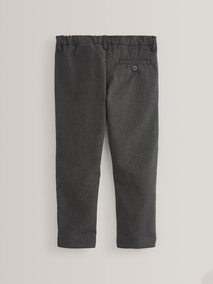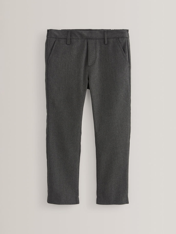Go back to school in style with our regular fit grey Formal Stretch Skinny Trousers. The pull-on waist and skinny leg silhouette make these flat-front trousers a modern, yet stylish addition to his school uniform.Made with an easy iron fabric, this pair of trousers also features Teflon® technology to help repel water-based stains.Key features: Regular waistband Easy Iron Fabric - Handy easy-iron finish Teflon® Technology - Teflon EcoElite™ is a non-fluorinated plant-based finish that repels water and water-based stains for easy cleaning and quick drying. Visit www.teflon.com/ecoelite for more information Machine washable Pull-on waist Flat front Straight leg style Pull-on waist option available Machine washable. 63% Recycled polyester, 34% LENZING™ ECOVERO™ Viscose, 3% Elastane. Country of Origin: Bangladesh