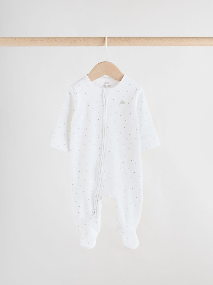 Machine washable. 2 x Sleepsuit 85% Cotton, 15% Recycled polyester. Country of Origin: India Warning: Keep away from fire and flames.