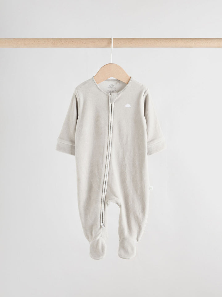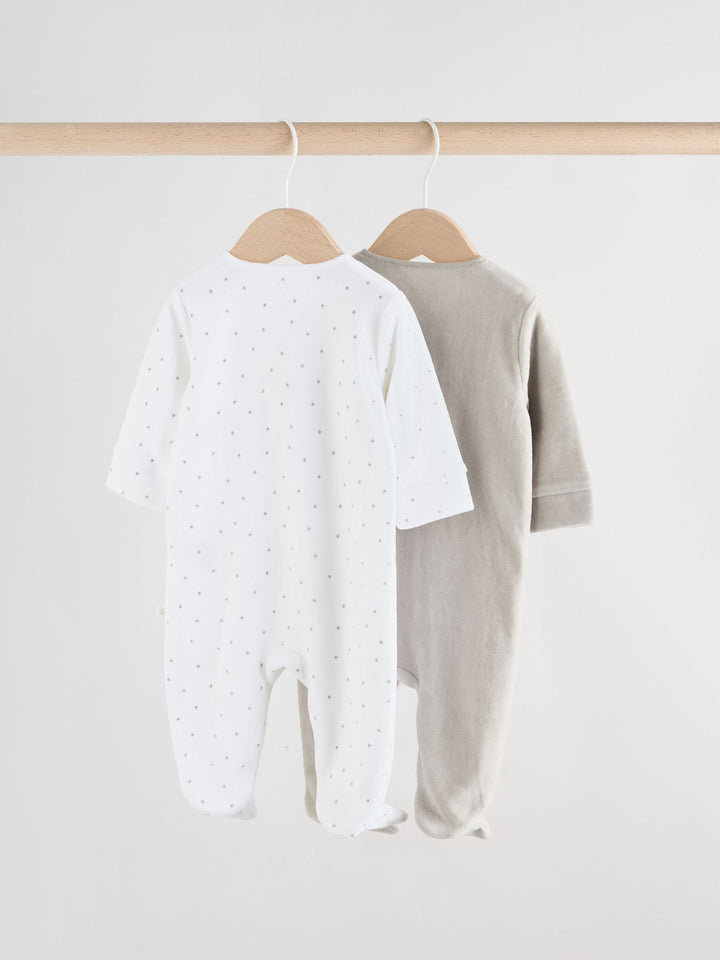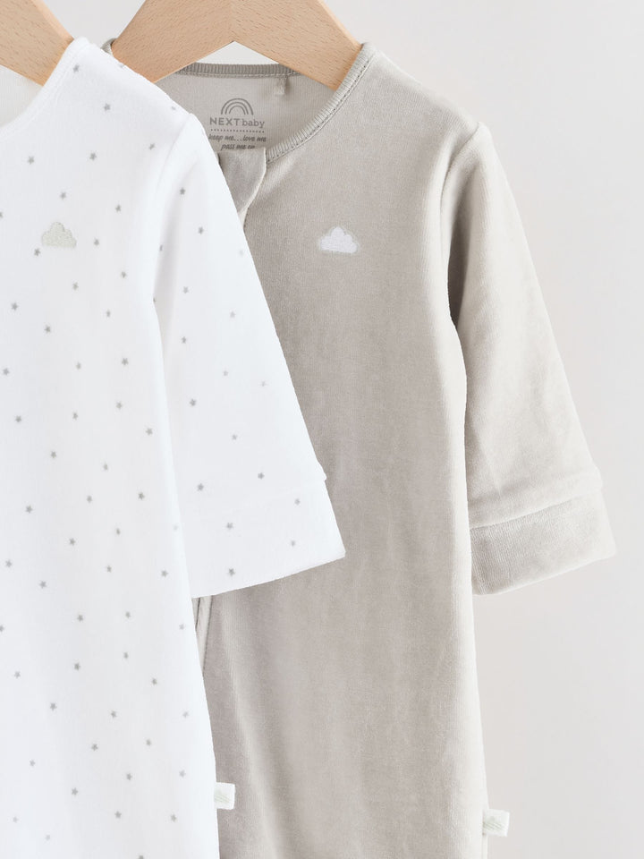 Grey Velour Two Way Zip Baby Sleepsuits 2 Pack (0-2yrs)