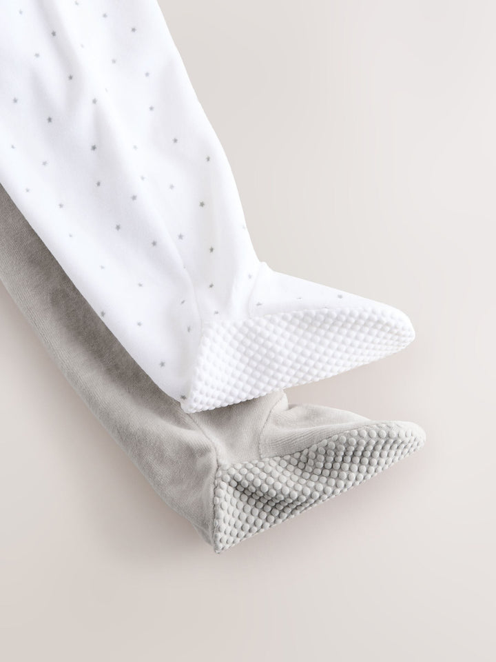 Grey Velour Two Way Zip Baby Sleepsuits 2 Pack (0-2yrs)