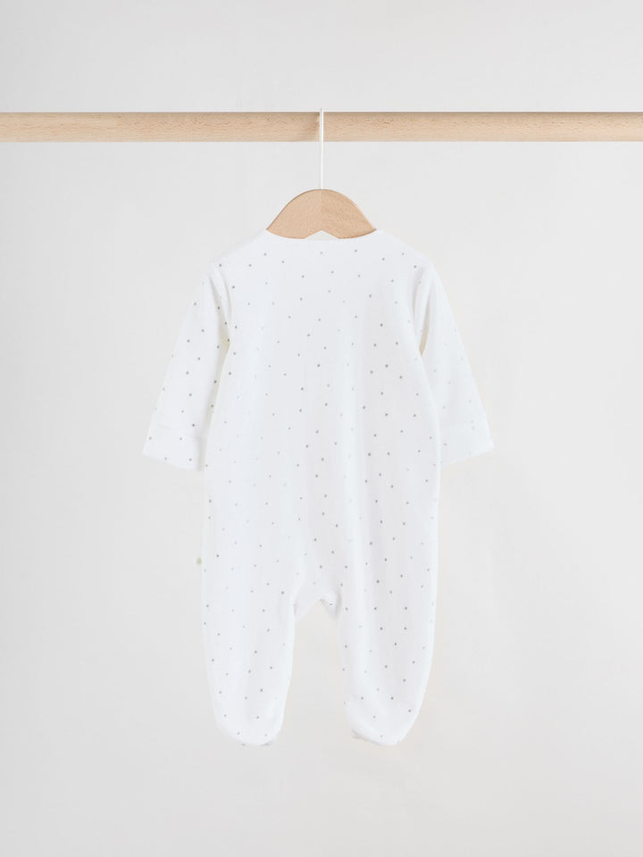 Machine washable. 2 x Sleepsuit 85% Cotton, 15% Recycled polyester. Country of Origin: India Warning: Keep away from fire and flames.