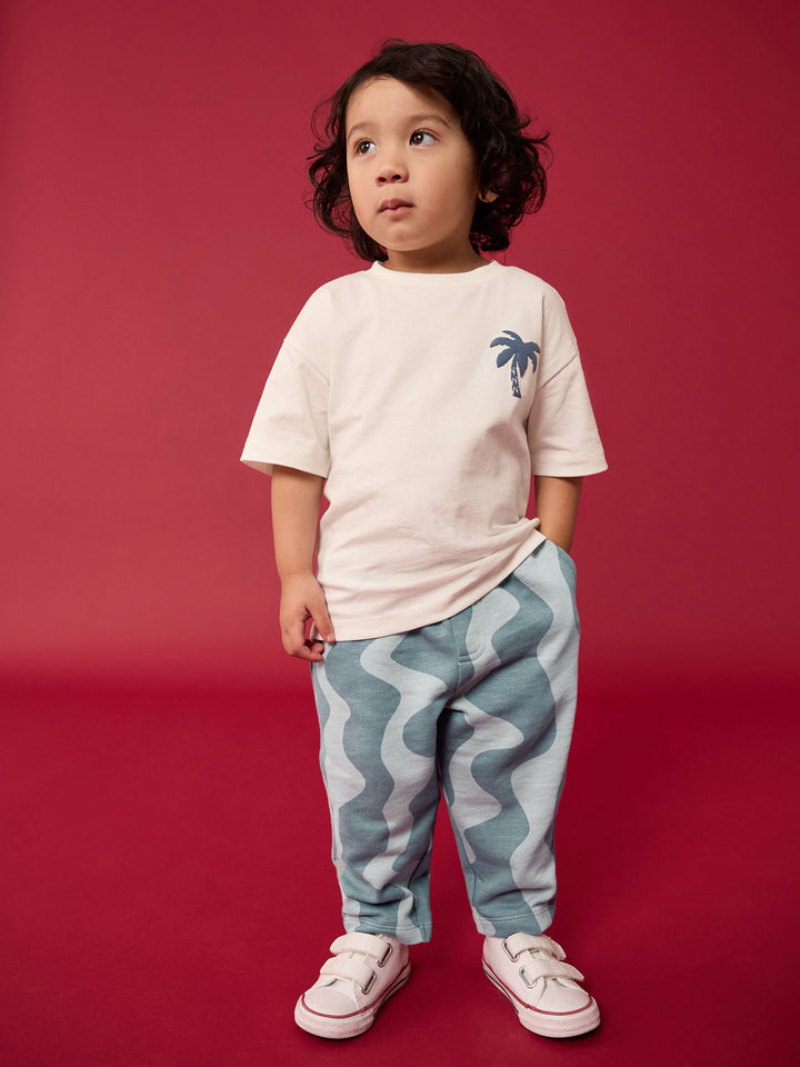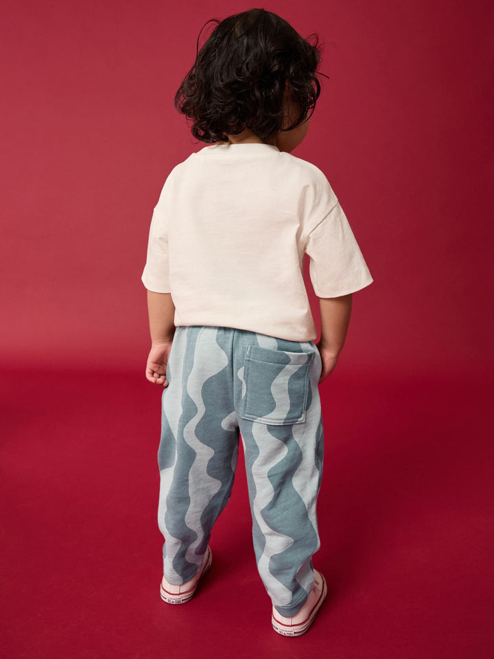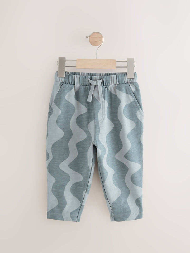 Keep them stocked up with comfortable and stylish classics, with this grey wavy print pair of joggers, made from pure cotton with an elasticated waistband and an adjustable drawcord, side and back pockets and an open hem to the ankle. 100% cotton Elasticated waistband Adjustable drawcord Side and back pockets Machine washable. 100% Cotton. Country of Origin: Bangladesh