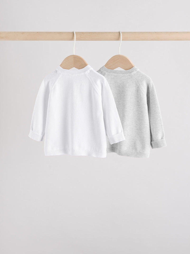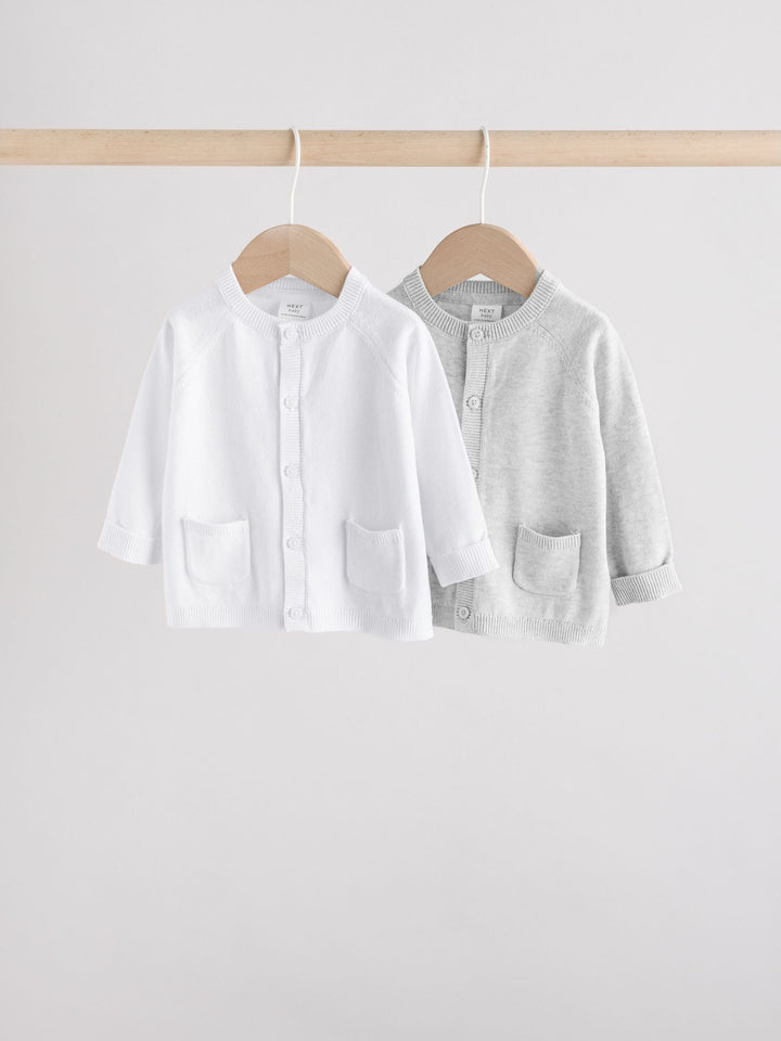 Grey/White Grey and White 2pk Knitted Baby Cardigan