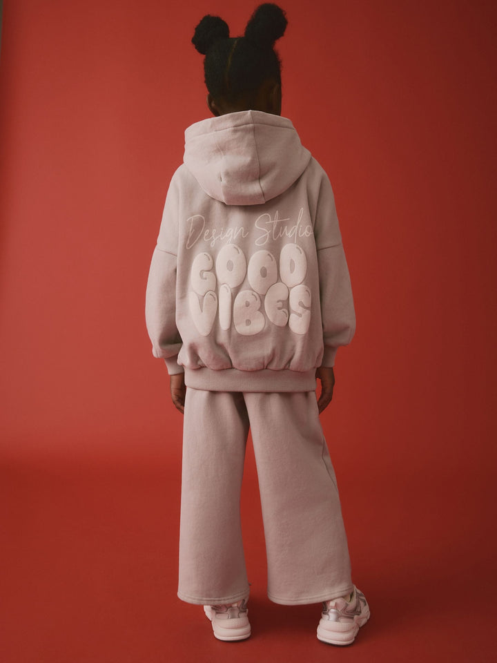 These comfortable and stylish grey jogging bottoms are made from a soft cotton-rich jersey fabric, featuring a wide leg shape with an elasticated waistband, a stitched central seam and printed graphics to the thigh. Wide leg Cotton-rich fabric Elasticated waistband Central seam Thigh print Machine washable. 93% Cotton, 7% Recycled polyester. Country of Origin: Pakistan