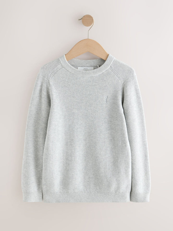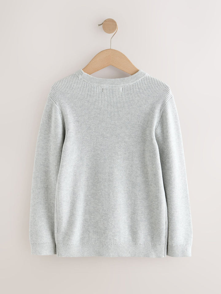Grey With Stag Cotton Crew Neck Knitted Jumper (3-16yrs)