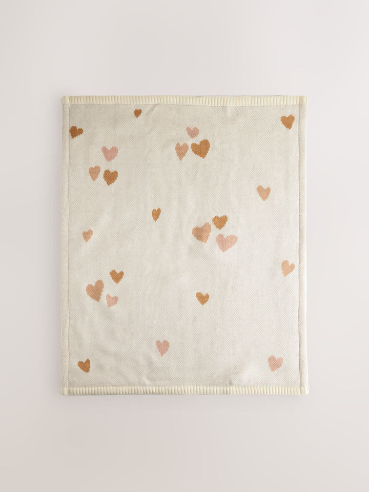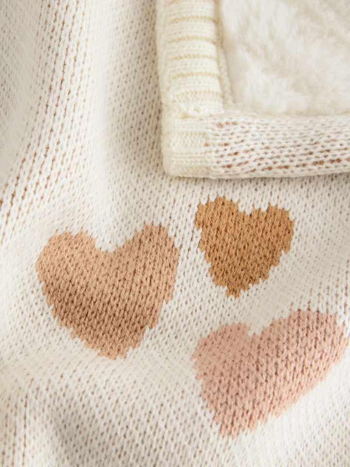 Hearts Baby Knitted Blanket with Fleece Reverse