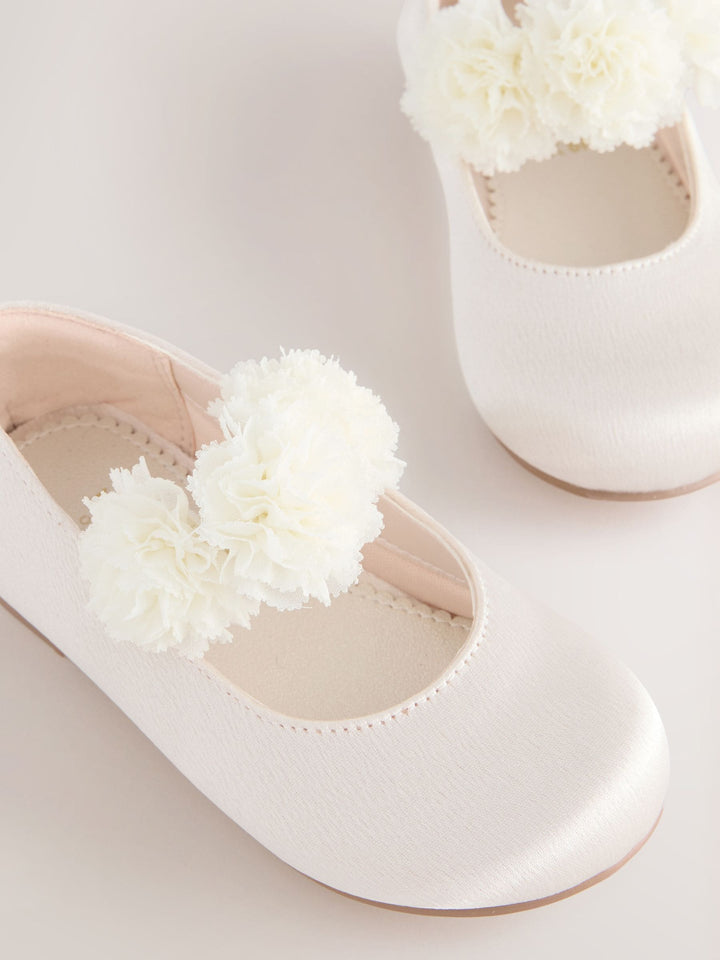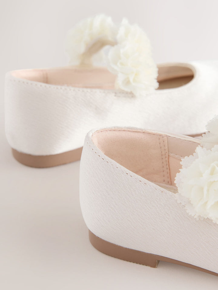 Ivory Standard Fit (F) Girl Satin Flower Occasion Mary Jane Shoes