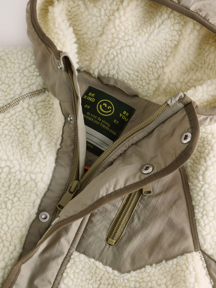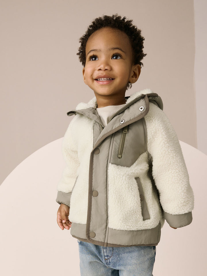 Khaki/Cream Colourblock Borg Jacket (3mths-7yrs)