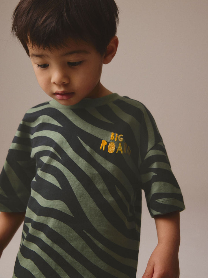 Khaki Green Animal Print Short Sleeve T-Shirt (3mths-7yrs)