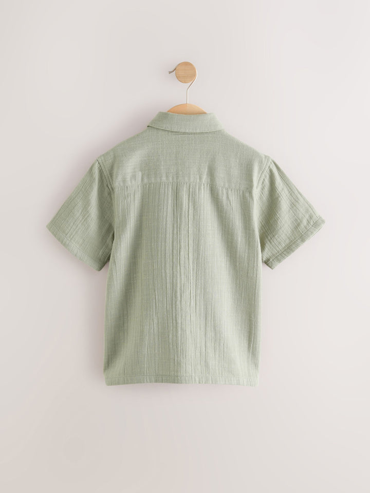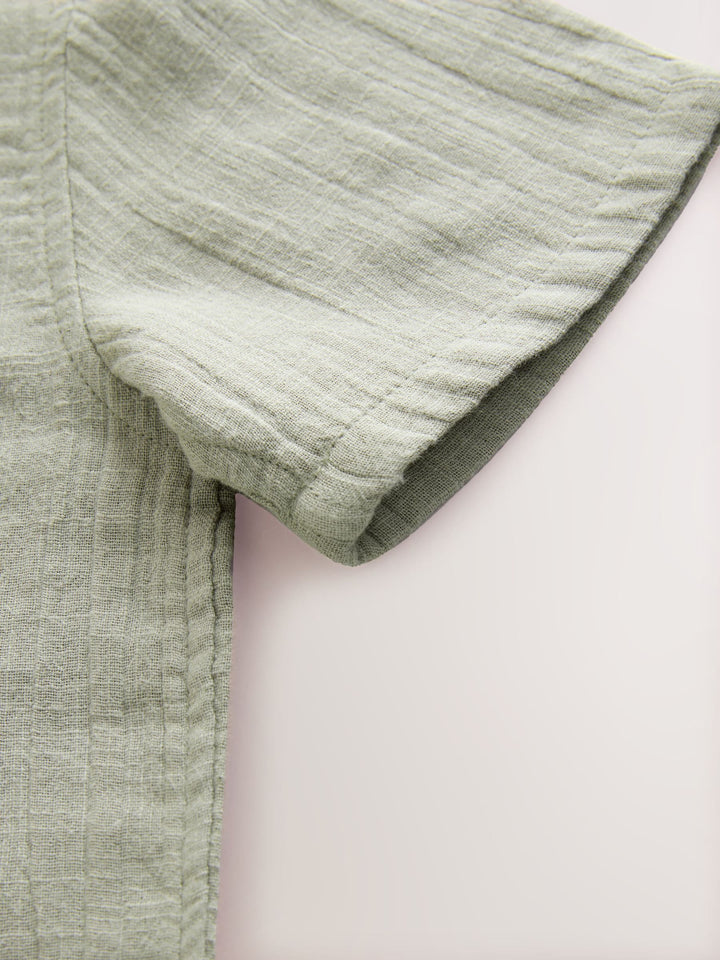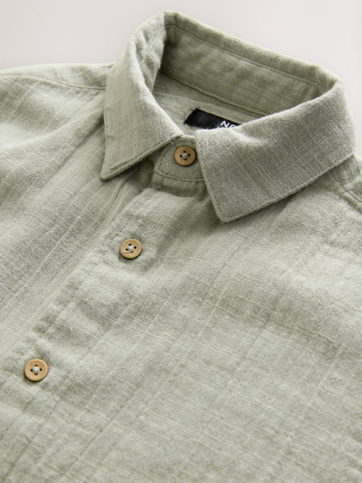 Khaki Green Double Cloth 100% Cotton Short Sleeves Textured Shirt (3-16yrs)