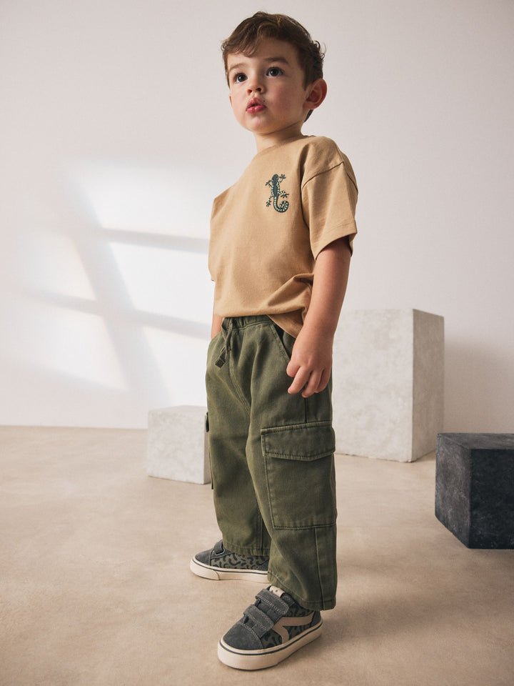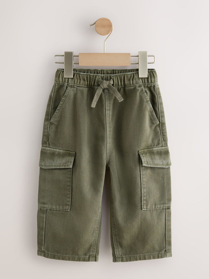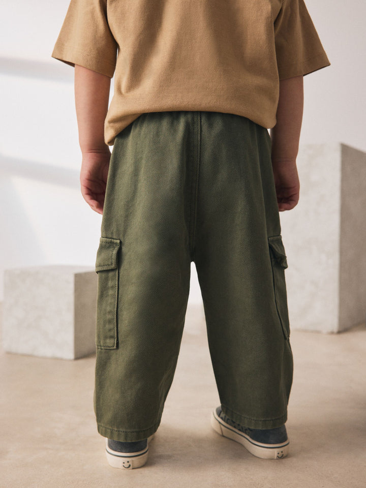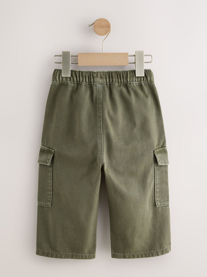 Khaki Green Washed Wide Leg Cargo Trousers (3mths-7yrs)
