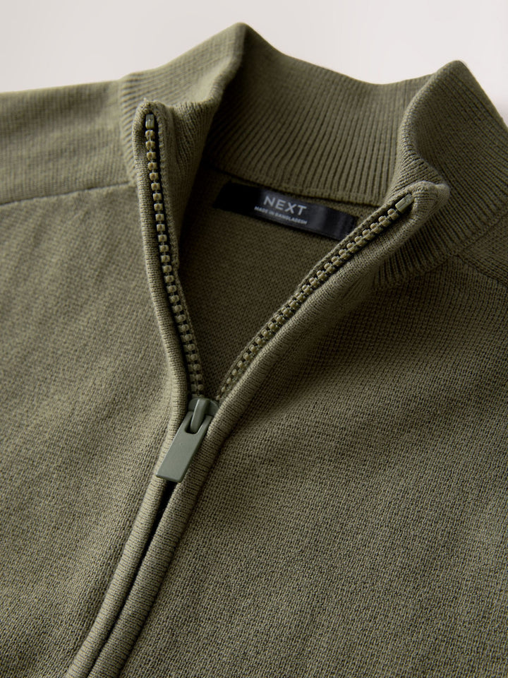 Khaki Green Zip Through Knitted Cardigan (3-16yrs)