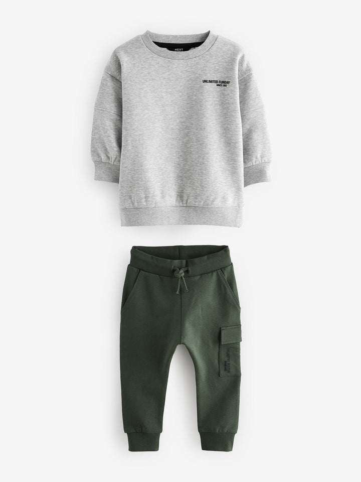 Khaki/Grey Utility Sweatshirt and Super Skinny Joggers Set (3mths-7yrs)