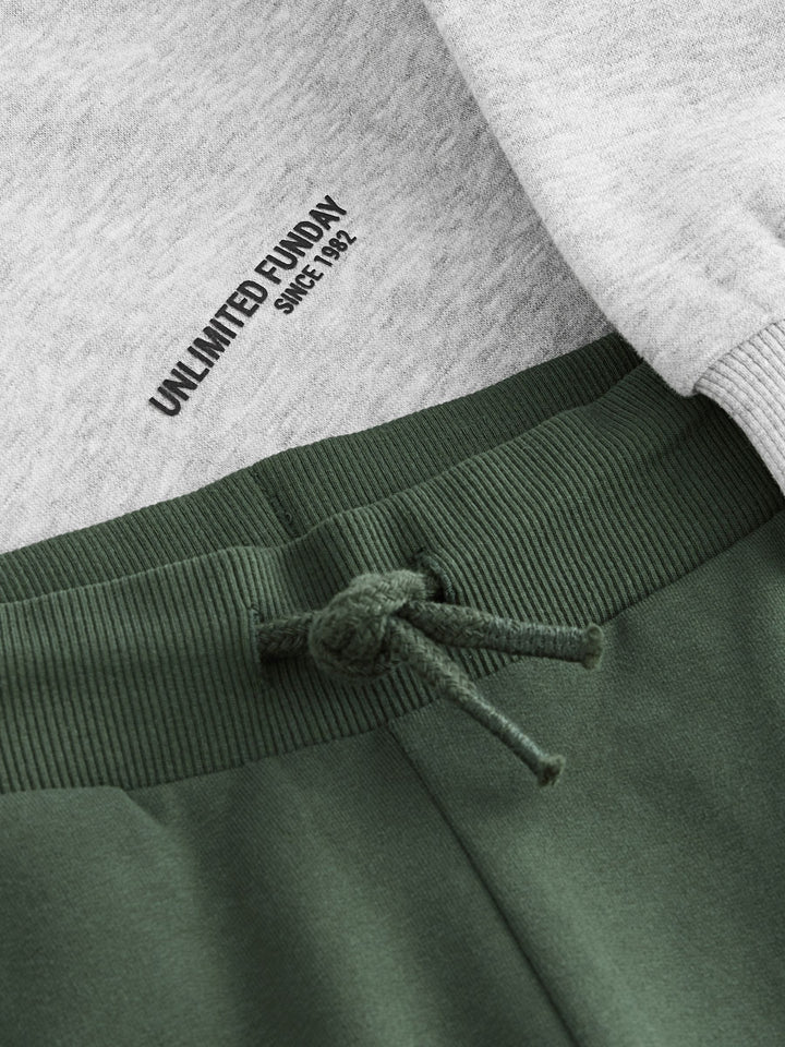 Upgrade his rotation with our khaki/grey utility sweatshirt and super skinny joggers set. In a cotton rich blend, this stylish set includes a grey long sleeve sweatshirt and khaki skinny fit joggers. Cotton rich 2 piece set Long sleeve sweatshirt Skinny fit joggers Machine washable. Sweater 75% Cotton, 20% Recycled polyester, 5% Viscose. Jogger 95% Cotton, 5% Elastane. Country of Origin: Bangladesh