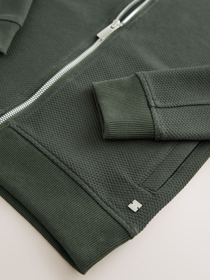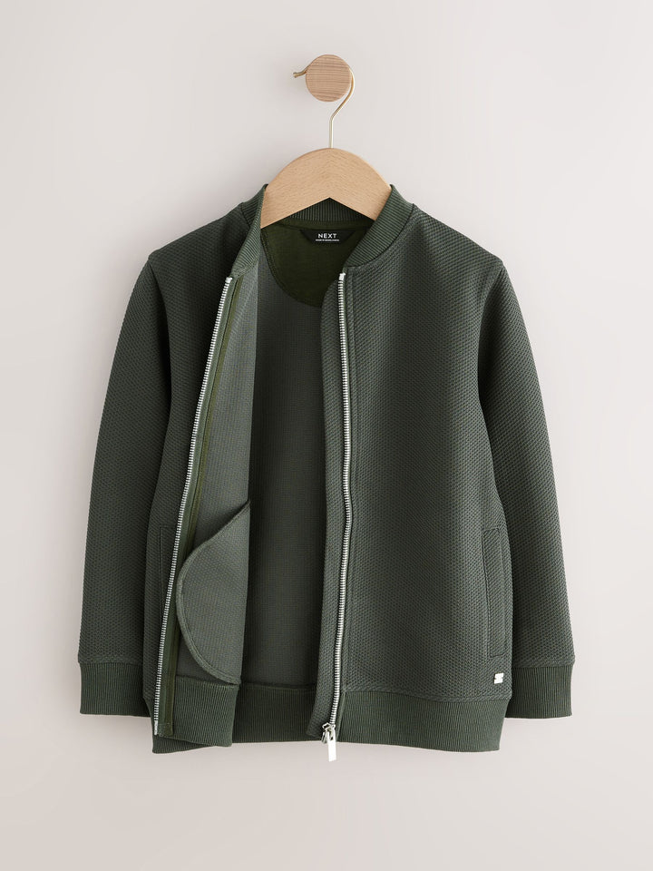 The perfect blend of smart and casual, this bomber jacket features a textured fabric design for an elevated look, featuring a zip fastening, a ribbed collar and side pockets, finished with metal badge detailing. Bomber design Zip fastening Textured fabric Ribbed collar Machine washable. 95% Recycled polyester, 5% Elastane. Country of Origin: Bangladesh