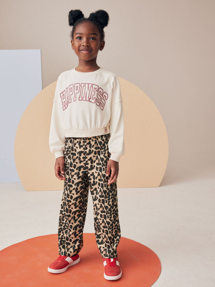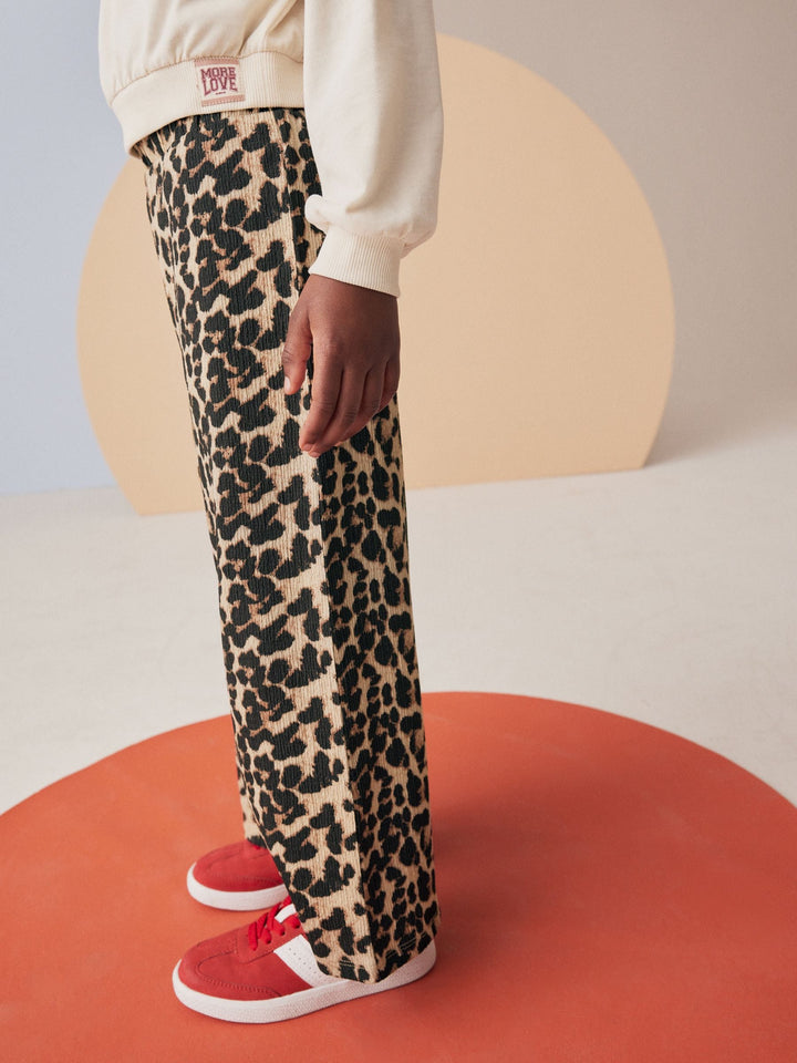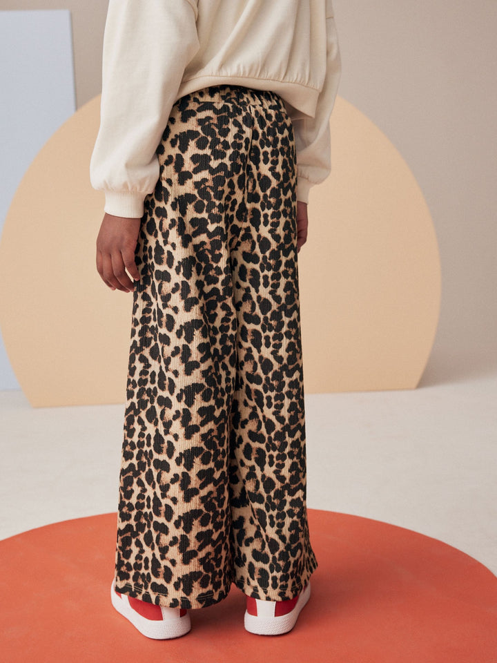 Leopard Print Textured Wide Leg Trousers (3-16yrs)