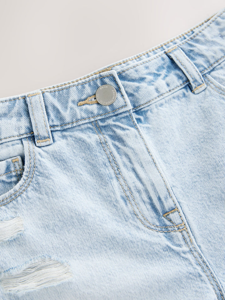 Light Blue 100% Cotton Frayed Edge Distressed Shorts (3-16yrs)