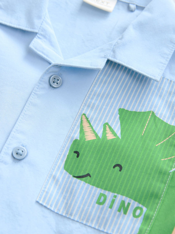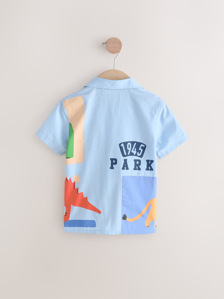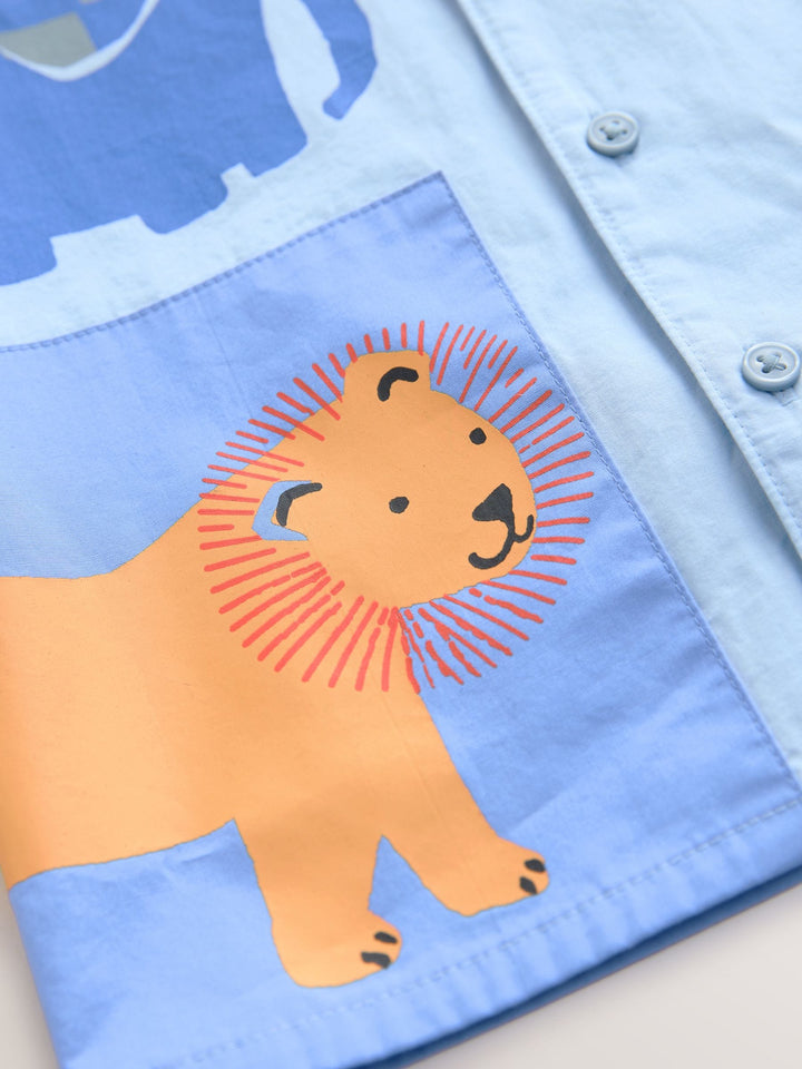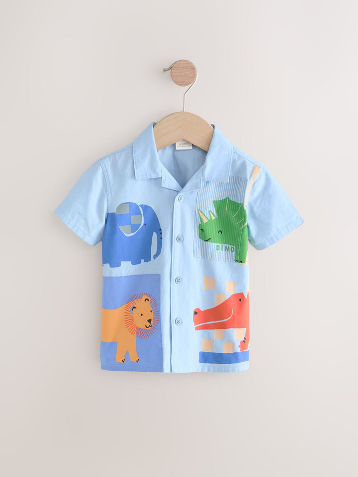 Light Blue 100% Cotton Short Sleeves Animal Hotchpotch Printed Shirt (3mths-7yrs)