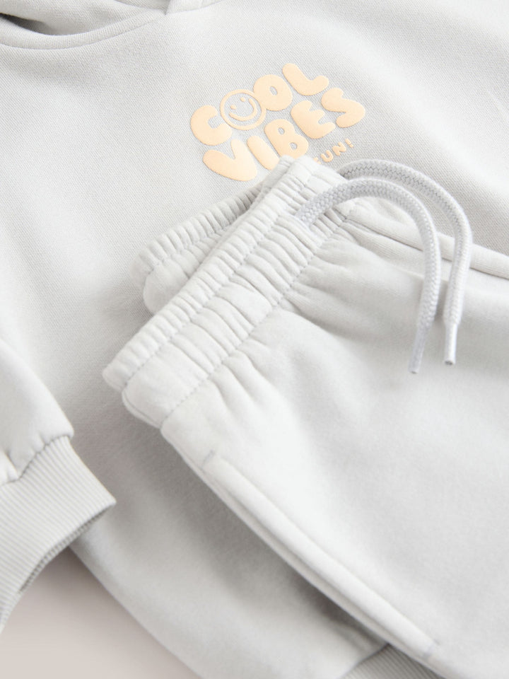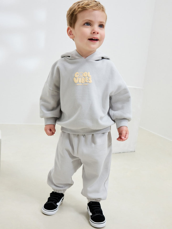 He'll be set for laid-back days in this stylish hoodie and jogger set. The cosy hoodie features a 'cool vibes' print to the front and back of the design for a fun touch, while the joggers feature an elasticated waist to ensure a comfortable and secure fit. 'Cool vibes' graphic Back print Elasticated waist Machine washable. Sweater and Jogger 80% Cotton, 20% Recycled polyester. Country of Origin: Bangladesh