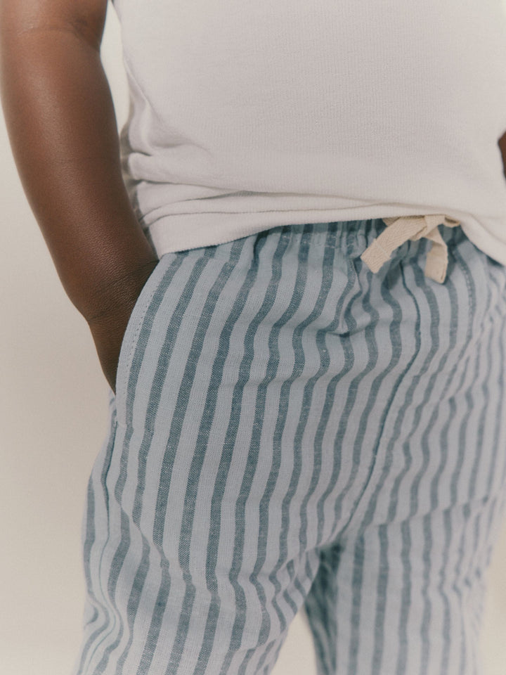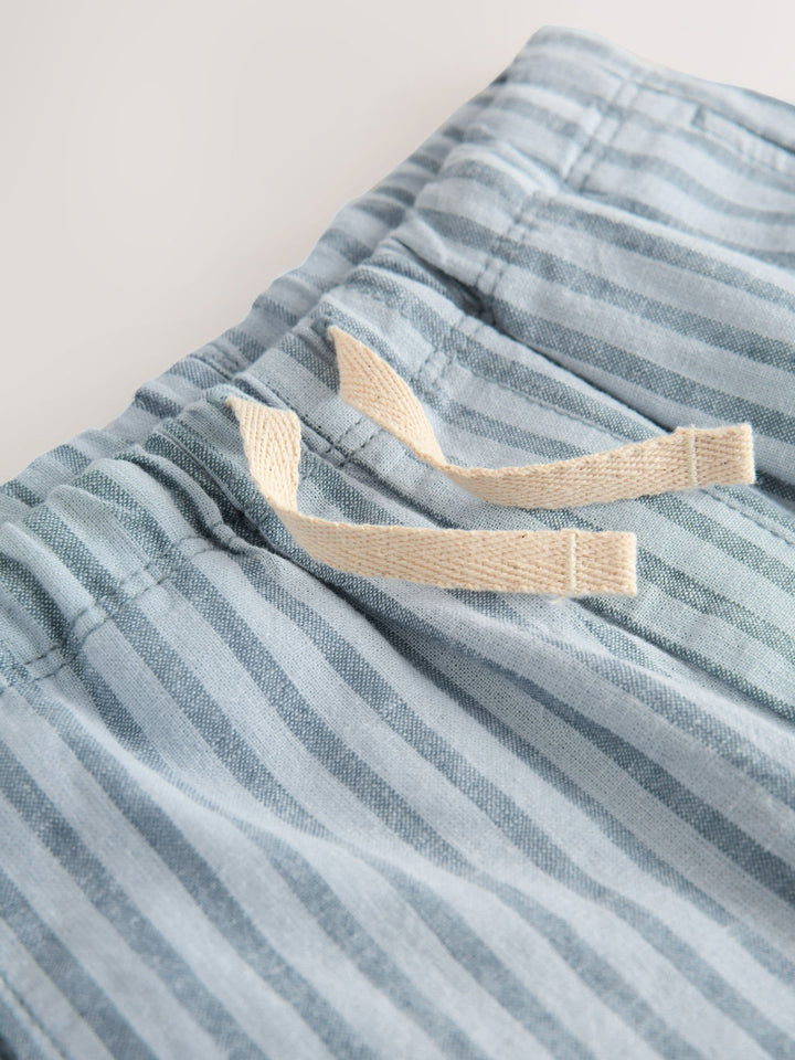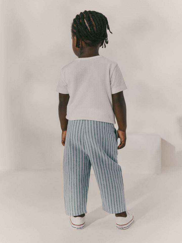 Light Blue Stripe Loose Fit Wide Leg Linen Blend Pull On Trousers (3mths-7yrs)